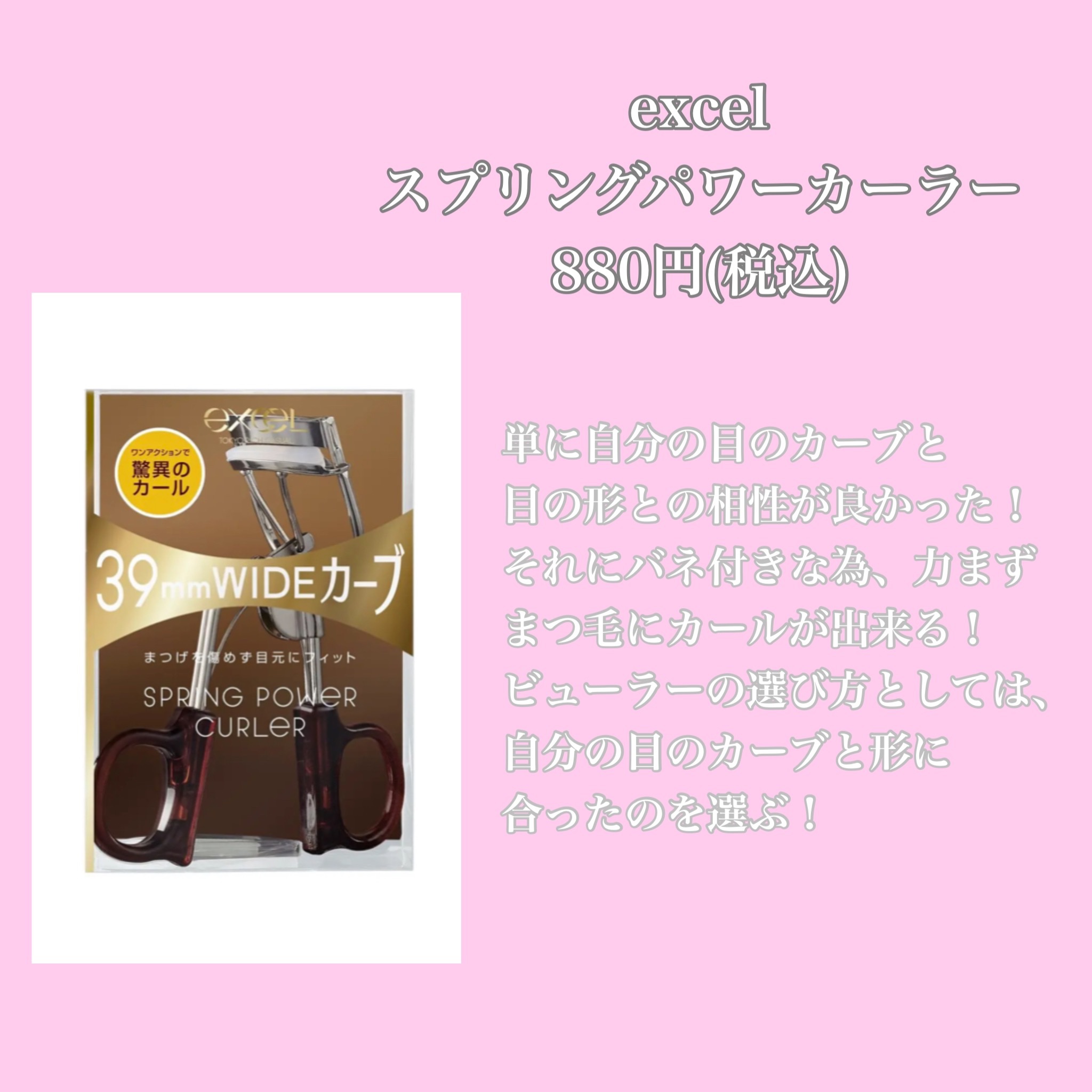 少しの力でバチバチまつ毛に!excelスプリングパワーカーラー本体レビューexcelの大好きなビューラー紹介!リピ3回目くらい♡良さを語りたいとおもいます…まず結構握るところが太めなのでぎゅっと握りやすいです。スプリングタイプのビューラーなの...