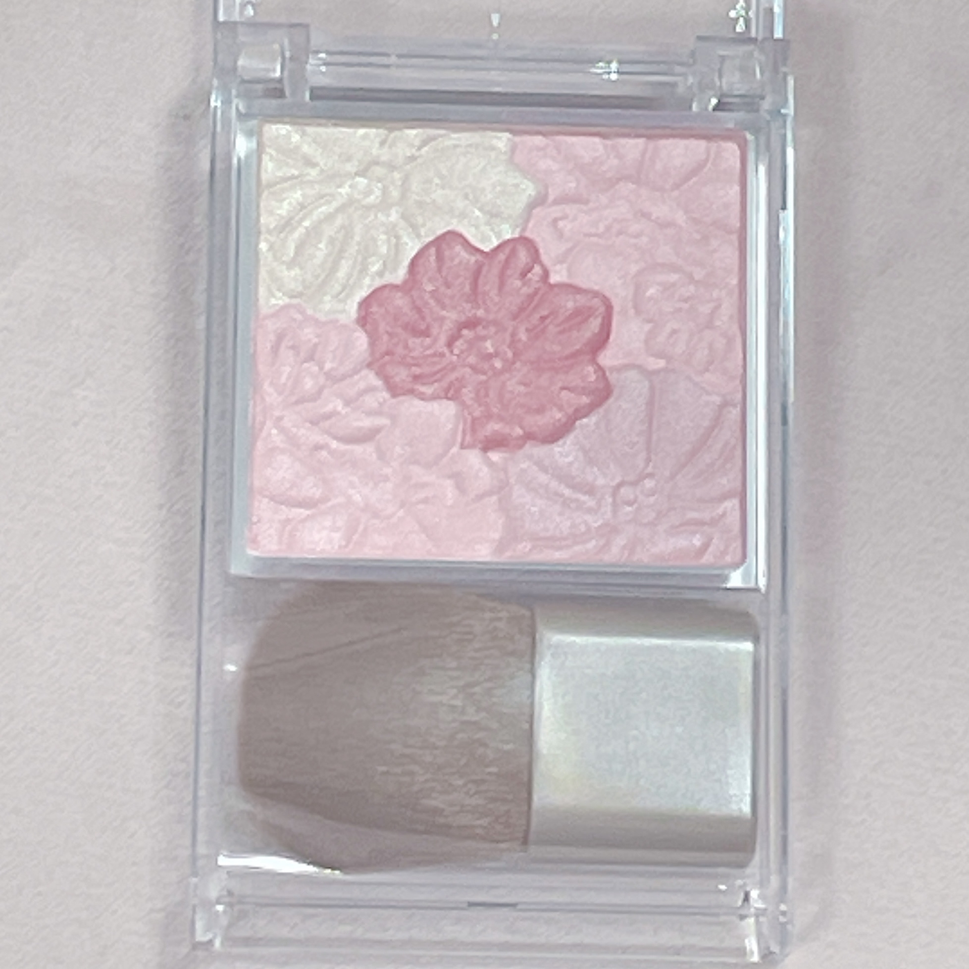 上品なローズカラーのチーク&ハイライトです♡ 透け感のある柔らかい発色で、右下の色も意外とふんわり色づきます ナチュラルな仕上がりのツヤチーク探してる方におすすめです👍🏻