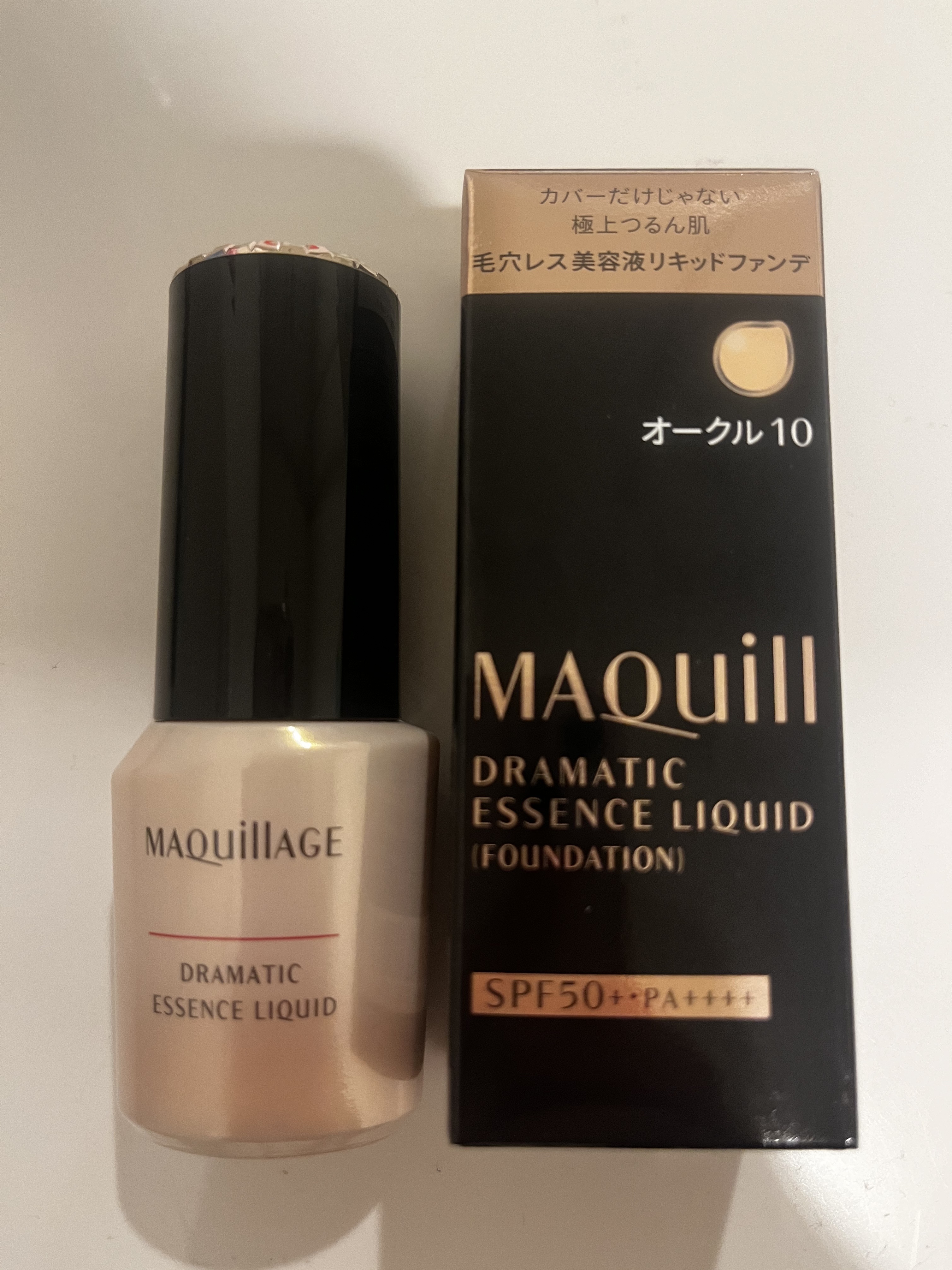 マキアージュのドラマティックエッセンスリキッドすごく気になってたのでこのような機会を貰えて凄く嬉しいです!! 崩れることも無くそして乾燥もすることなく肌が守られてる感じがしてすごく良かったです!! ツルっとうるっとしたお肌にしてくれるそんなファンデーションでした!!