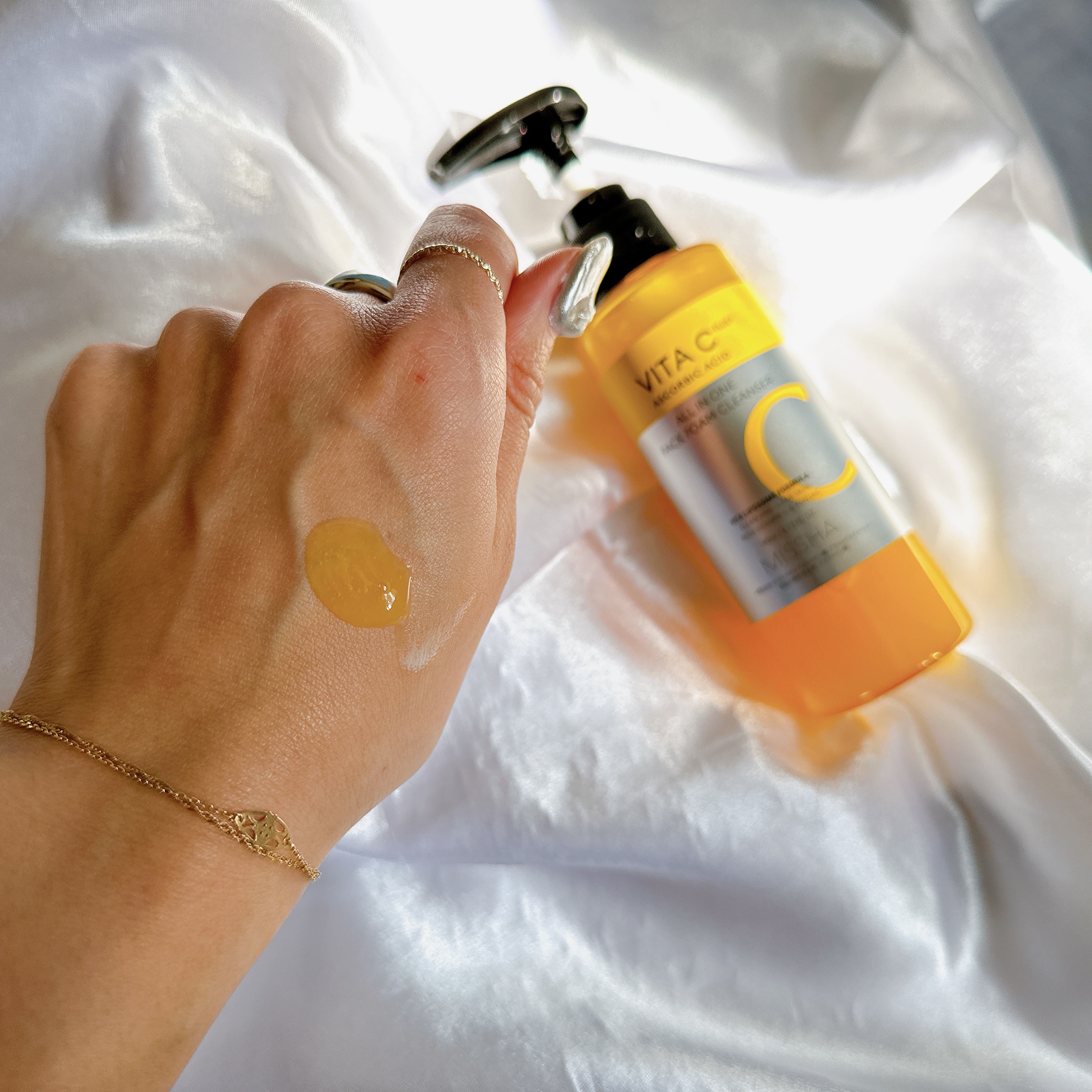 肌にのせるとジェルから泡に変化する発泡ジェル洗顔料です。はじけるビタCバブルとマイルドなこんにゃくスクラブが毛穴に詰まった余分な皮脂や老廃物をしっかり落とします。 ビタCらしく、すっきりとしたミカンのような香りです。合成香料不使用で、フレッシュな天然由来の香りです。 洗い上がりはかなりさっぱりめな印象です。脂性肌よりの混合肌の私でも、泡パックとして使用したら少し乾燥やつっぱり感がありました。