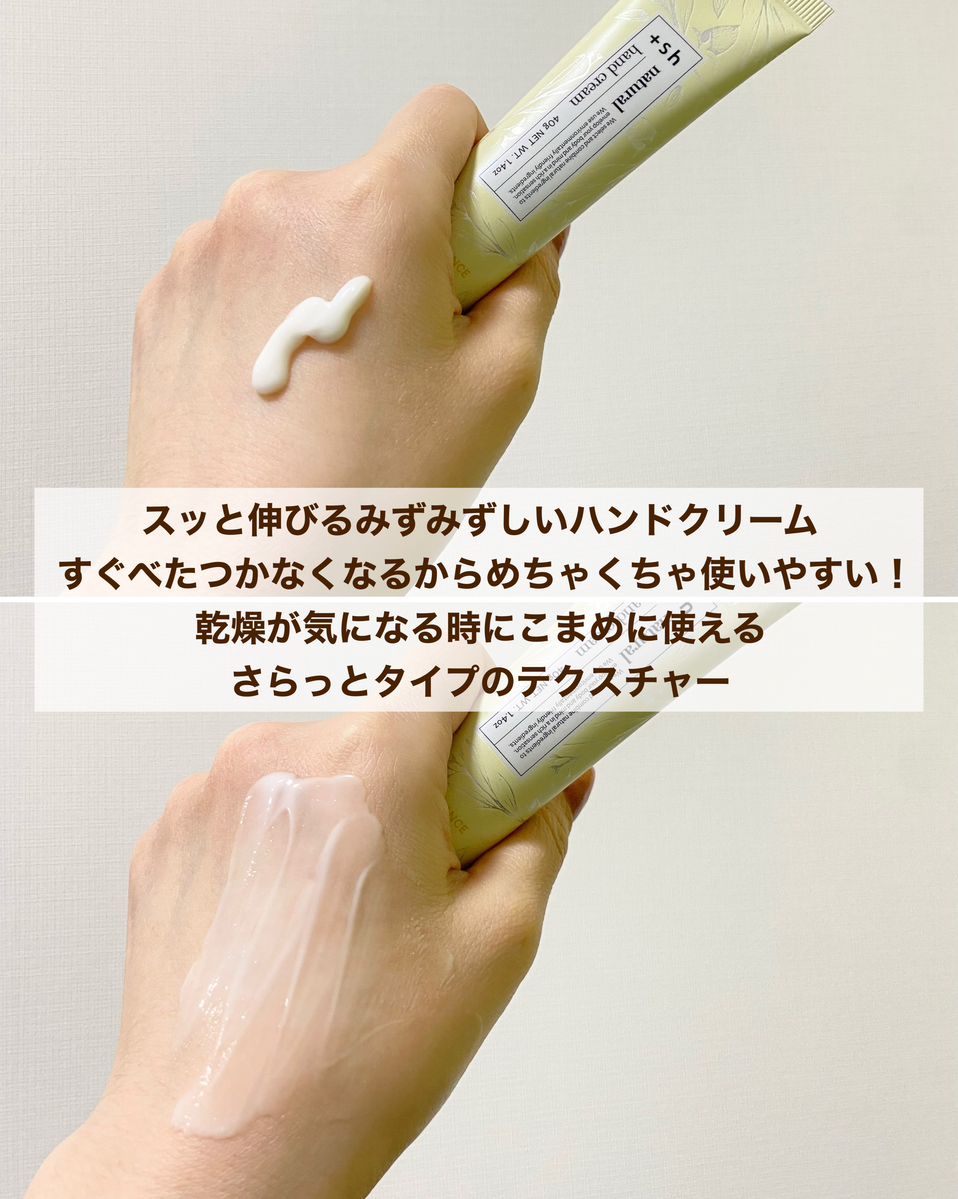 ハンドクリームのベタベタ苦手だったんだけど、これは違った! まるで美容液のような肌にグングン角質層まで染み込み感じがたまらない! ハンドクリーム発売1周年記念、初回限定期間限定40%オフコードがあるから使ってね!