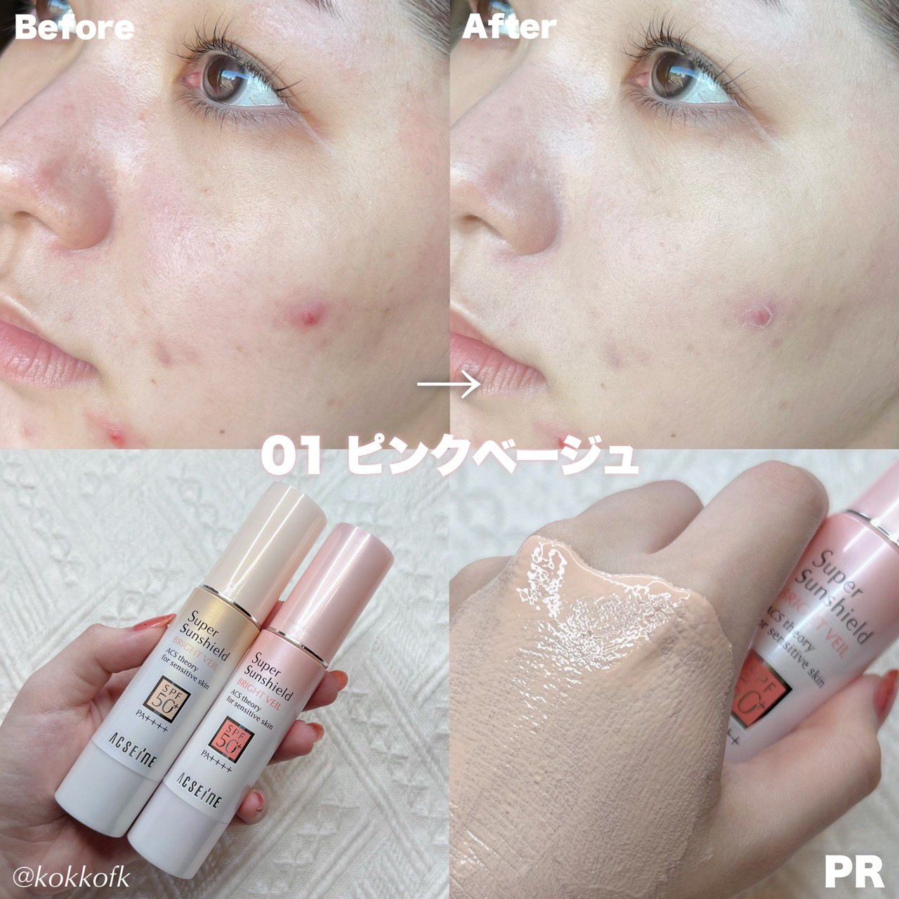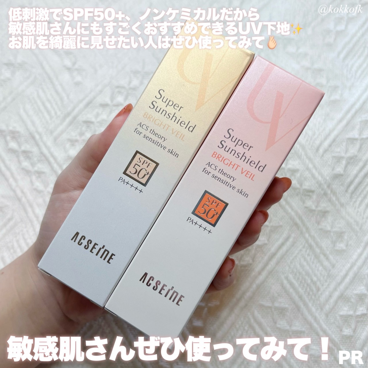 [敏感肌にも安心なUVベース✨]ACSEINEスーパーサンシールドブライトヴェール02クリームベージュSPF50+・PA++++でしっかり紫外線&近赤外線をカットしつつ、スキンケアしたみたいにしっとり感が続く優秀UV下地✨✔トーンアップしつつ...