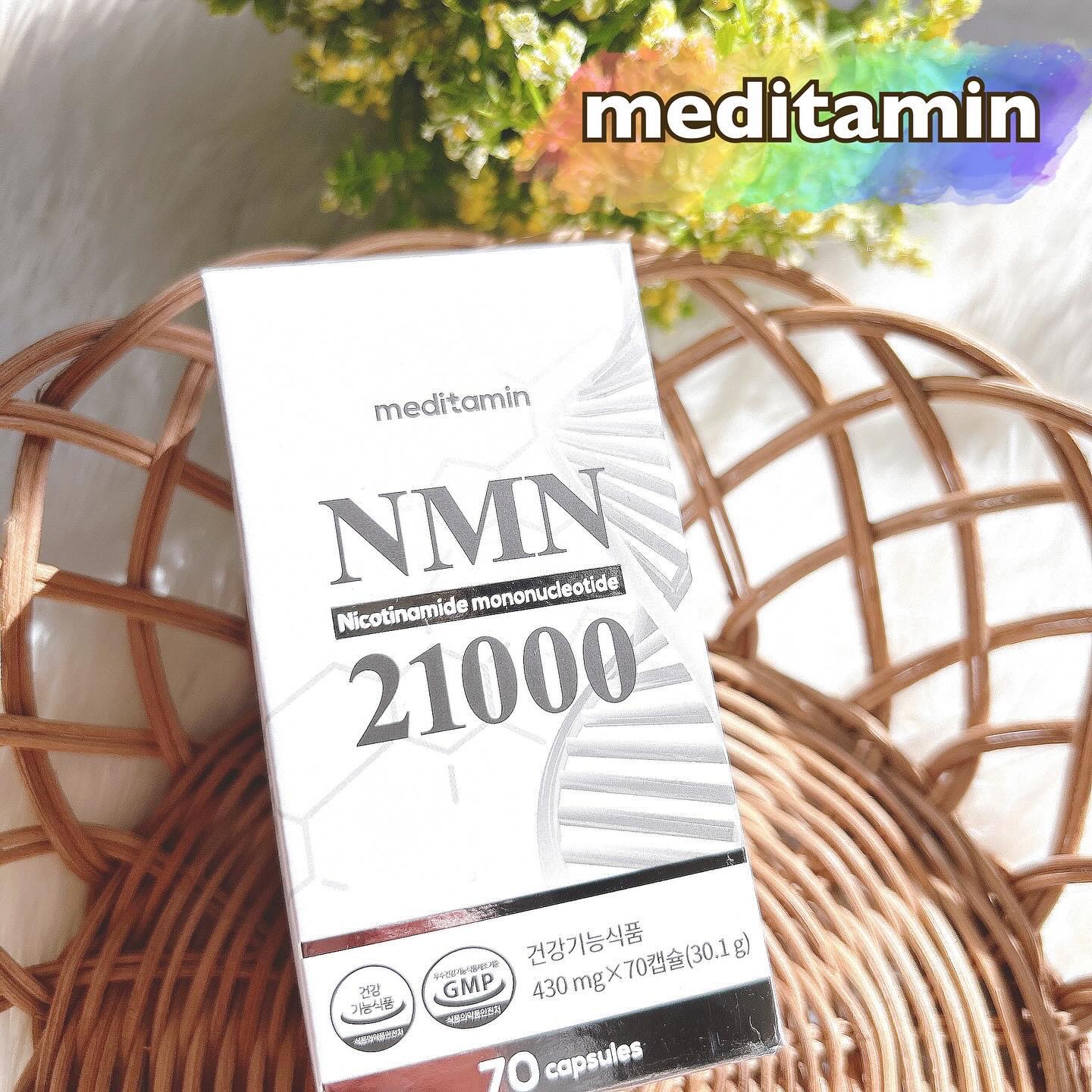 メディタミンのNMN21000は、NMNだけでなくコエンザイムQ10やクロレラなどの美容や健康に嬉しい成分も一緒に補給できるようになっています🍒🥤 1カプセル当たりにNMNが300mg含まれていながら70日間分がなんと3,000円台‼️ サプリメントが好きで普段から色々見てるけど、これはかなりのコスパです👀✨ 純度も99.9%✨ また、 KFDA(韓国食品医薬品安全庁)認定の健康機能食品、そしてGMP認定食品です。