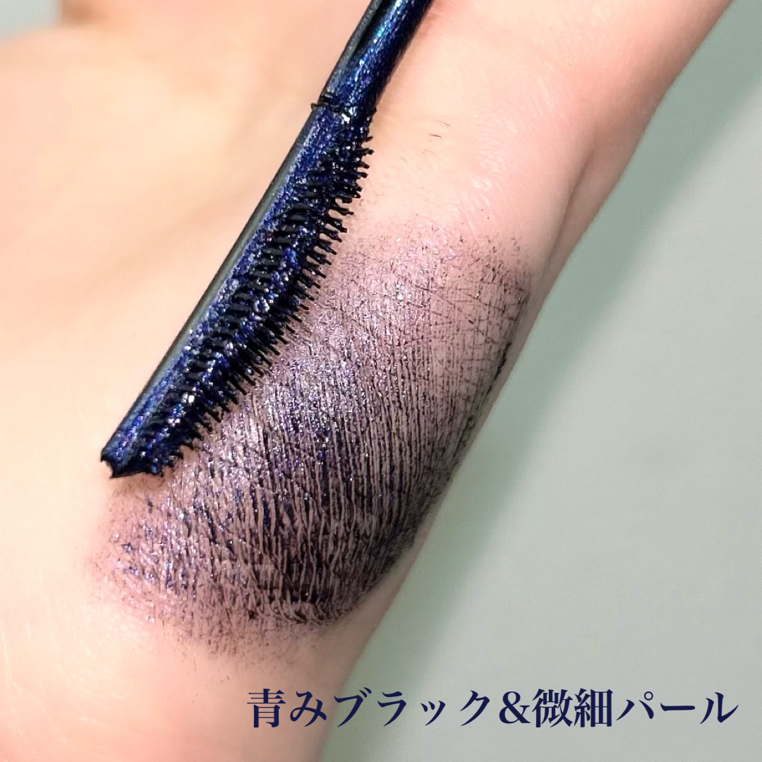 手に乗せるとパールが入ったザ・ブルーって感じですが、 まつ毛に塗るとパールは控えめでブルーとは違った 抜け感のあるブラックまつ毛を演出可能◎ カラーマスカラを普段使わない方でも 使いやすい印象です♪ まつ毛はしっかり主張したいけど 普通のブラックとは違うものに挑戦したい方に!! ぜひチェックしてみてね🤍