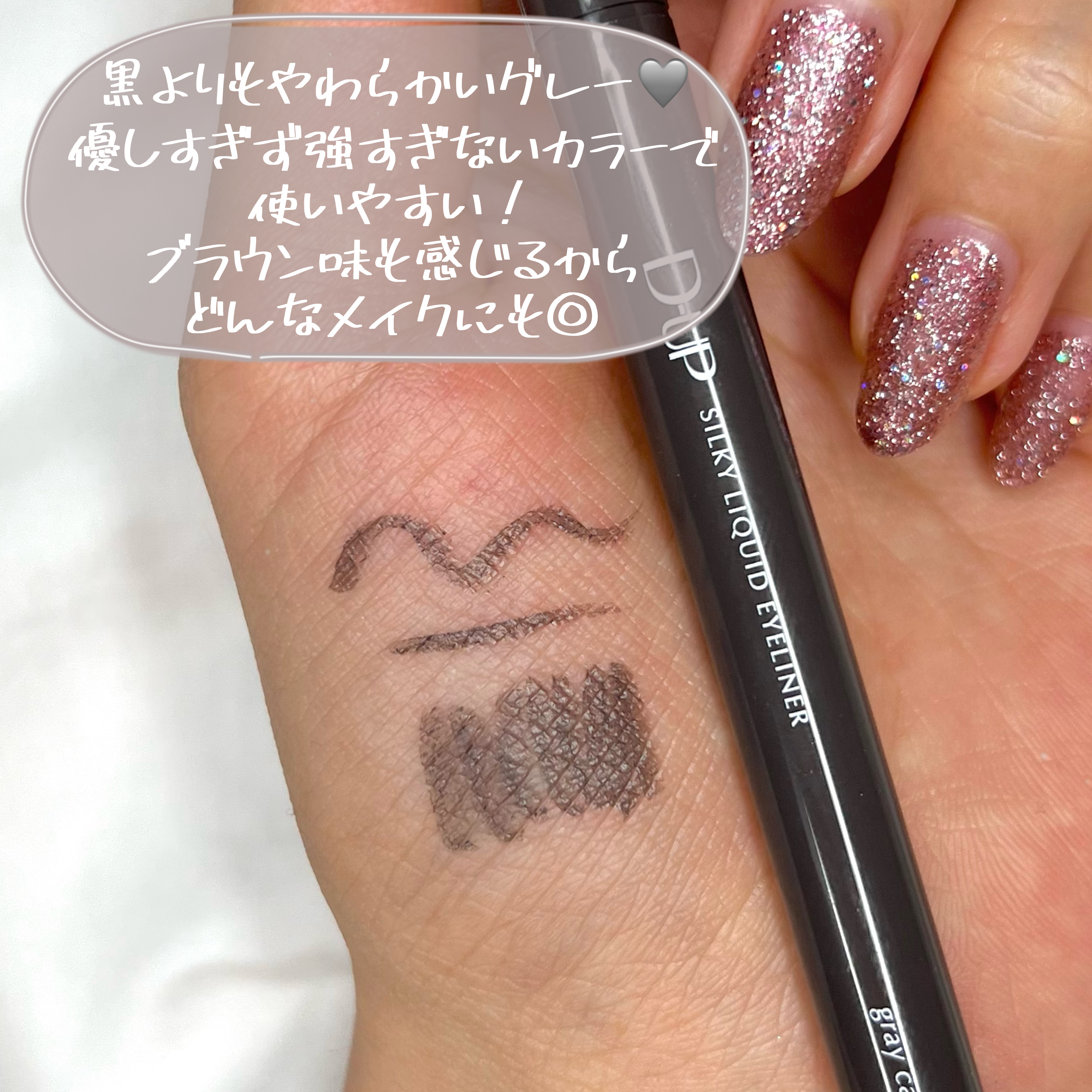 このシリーズ大好きで普段も使ってるんだけど、塗るだけ綺麗に発色のこのピンクブラウン、可愛すぎません❔ 室内光だと柔らかく、自然光に透かしてピンクに透ける儚いイメージに💎 グレーカシミアなんて素敵な名前初めて聞いた🩶 D-UPのライナーは細くて、したまつ毛を描いたり、隙間を埋めて丸目にしたりするのにぴったりなの! おすすめすぎるD-UPのシリーズ、是非メイクに取り入れてみて欲しい🥹🎀新しくでるカールロック下地もめっちゃ気になるよね♡