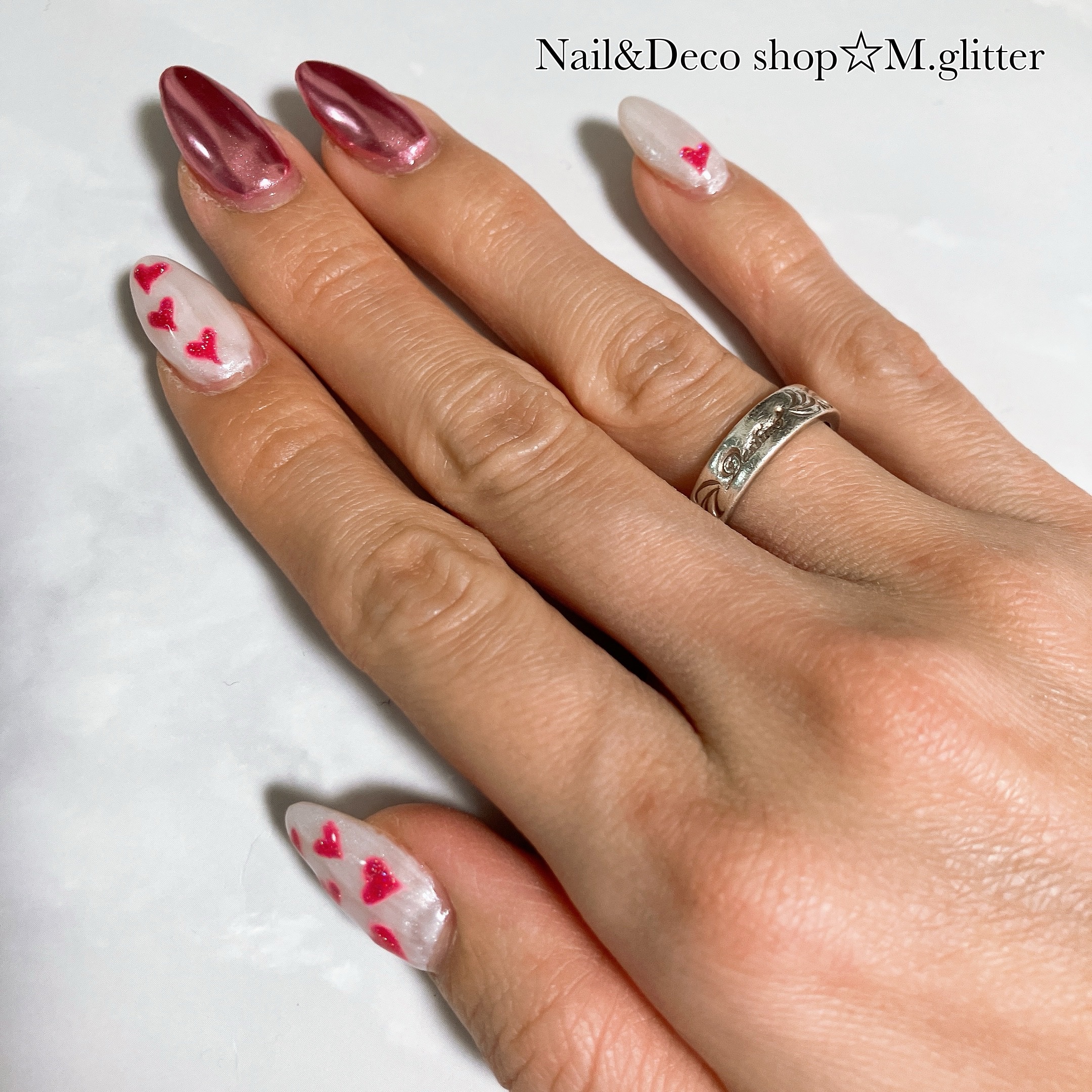 新感覚のピンクミラーネイルにうっとり❤️ペタリーさんから春の新作デザインをいただきました🎁画像で見てきただけではあんまりピンときてなかったんだけど、実物見たらキラッキラで感動✨こんなデザイン見たことない‼️近くで見るとなんとなくミラーパウダー...
