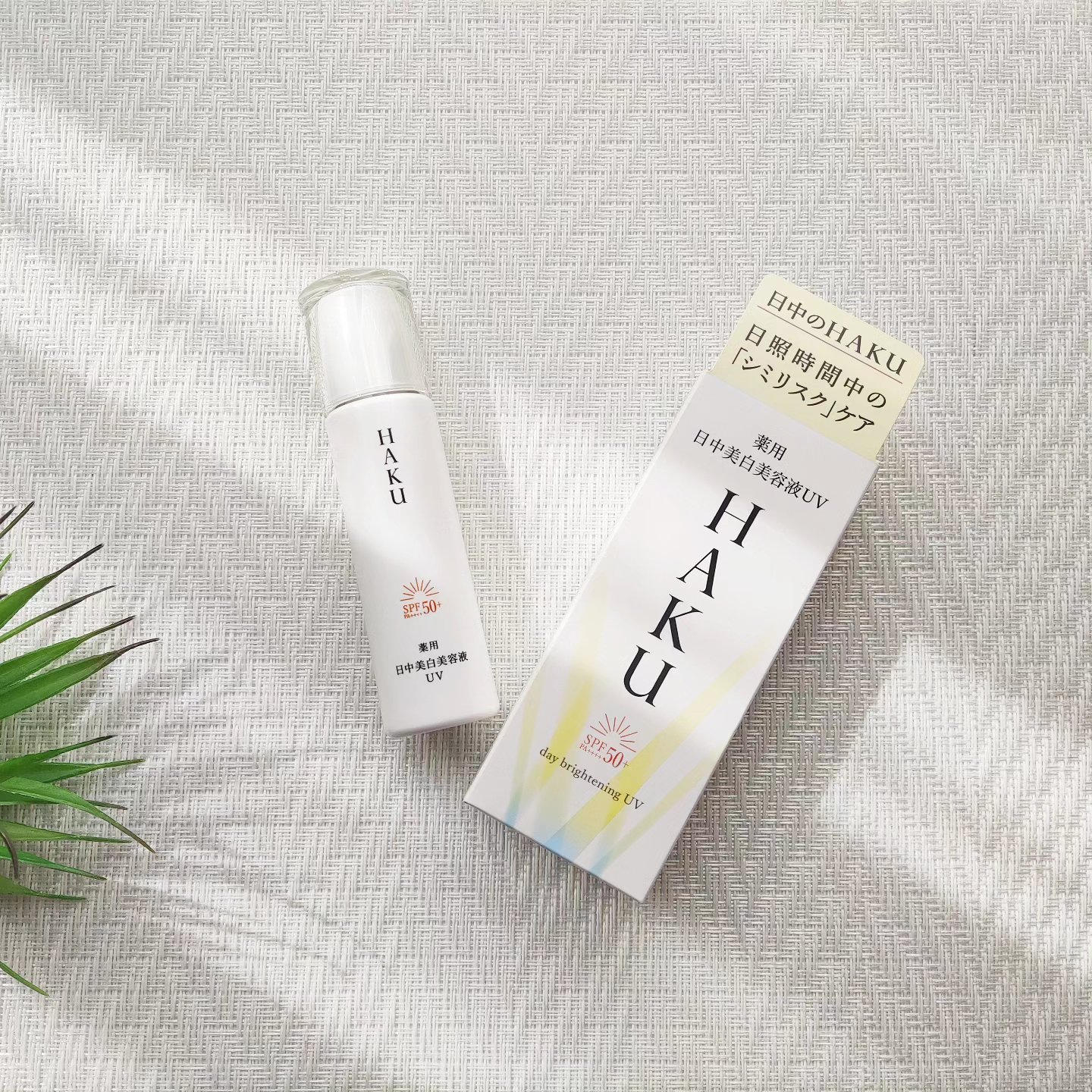 - 【医薬部外品】 (HAKU デイブライトニングUV) SPF50+・PA++++ シミができる日中環境のメラニン生成ルートに着目。 シミ予防研究の先端技術を搭載。 日中の「シミリスク」から守る徹底したケアによる肌管理。肌奥まで届け効かせる2種の美白有効成分がメラニンの生成を抑え、シミ・そばかすを防ぐ、日中の「シミリスク」ケア。 薬用 日中美白美容液UV。 「美発光肌」で輝き続ける。 乾燥による小ジワを目立たなくします。(効能評価試験済み) みずみずしく広がりしっとりなめらかな使用感
