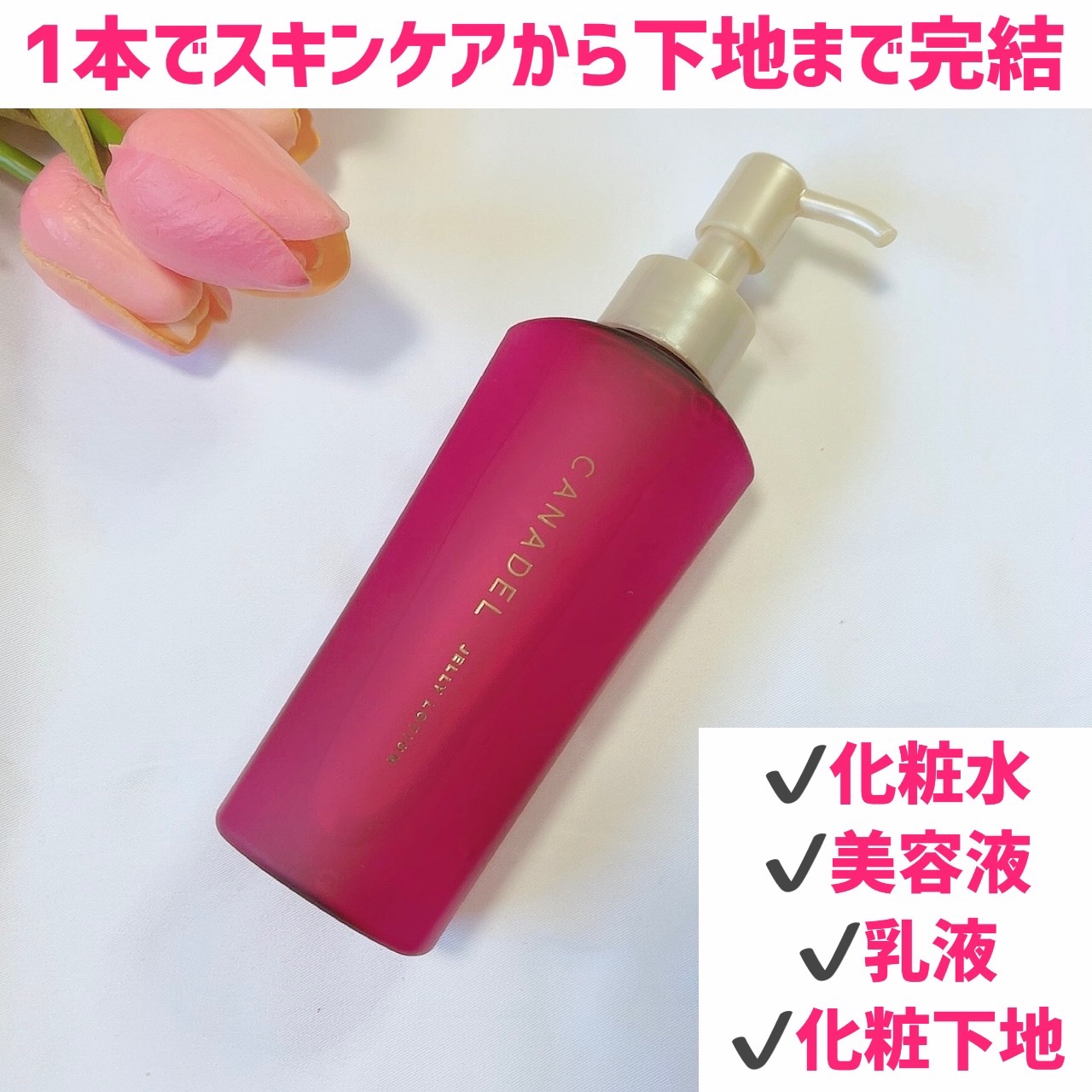 高保湿&シワを改善&美白!CANADEL ジュレローション【医薬部外品】 薬用有効成分ナイアシンアミドの働きで忙しい朝にもさっとなじんで乾燥・シミ・シワをケア。 化粧水、美容液、乳液、化粧下地の効果を兼ね備えているので、時短スキンケアが叶うのも嬉しい。