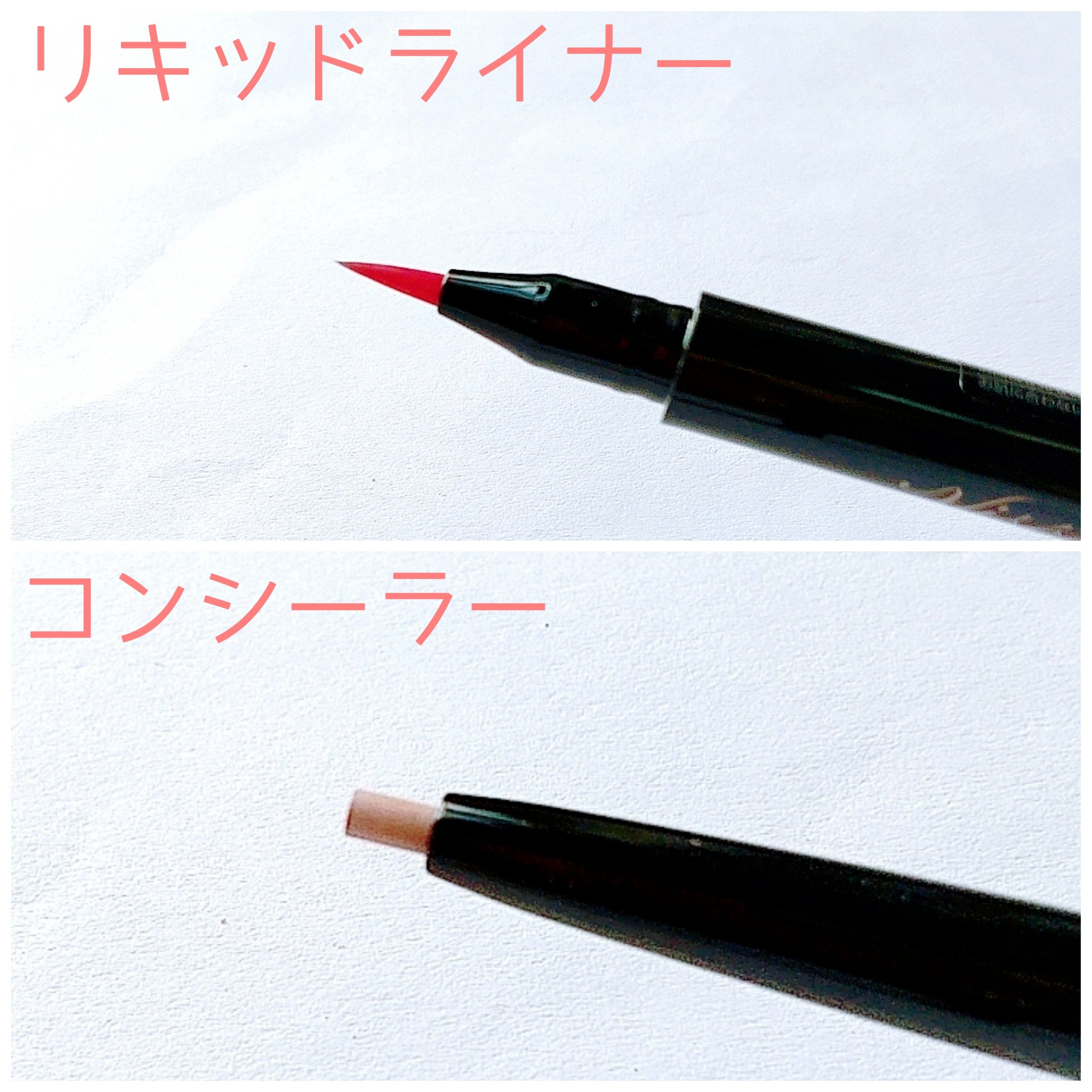 - ● 影色リキッドライナーとぷっくり魅せコンシーラーの合わせ技で、自然なふたえ・涙袋を演出する 2 in 1 アイライナーです。 ● 〈影色リキッドライナー〉 肌なじみのよい極薄発色で、涙袋の下やふたえラインなどへ自然な陰影を演出します。 ラインキープ成分配合、動きの多い目もとでも美しいラインを長時間キープします。 適度なコシのあるしなやかな筆なので、思い通りのラインを描くことができます。 ● 〈ぷっくり魅せコンシーラー〉 ノンパールなので、擬似的ではない自然な立体感を演出することができます。 スムースフィット成分配合、塗布直後はぼかしやすいのに乾いた後は肌に密着。 つけたての仕上がりが長時間持続します。 ● 無香料 ● 美容液成分〔コラーゲン・BG(リキッド)、コラーゲン・スクワラン(コンシーラー)〕(保湿) ● ラインキープ成分(リキッド) ● スムースフィット成分(コンシーラー) ラインキープ成分は(スチレン/アクリレーツ)コポリマー、 スムースフィット成分はペンタイソステアリン酸ジペンタエリスリチルです。