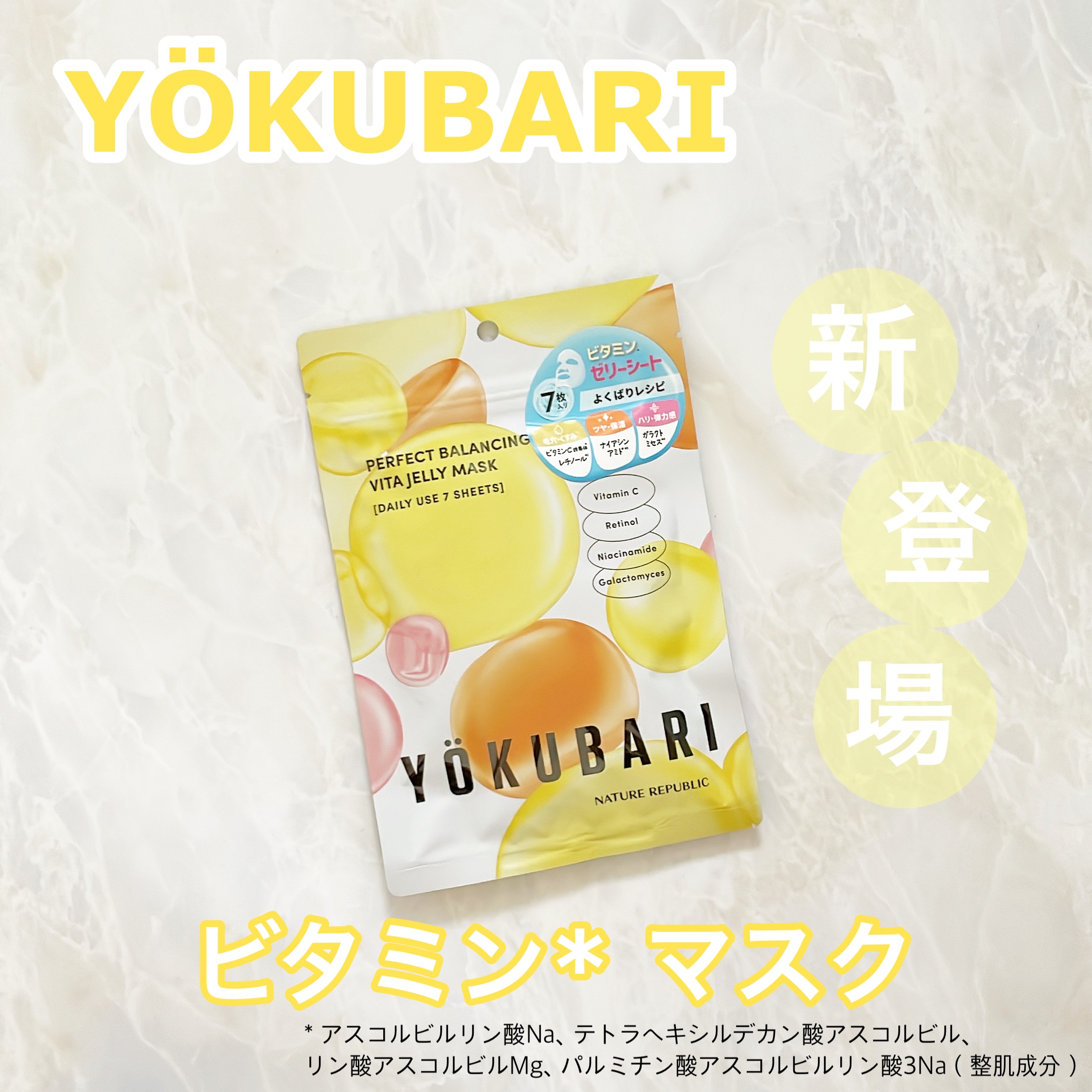 ネイチャーリパブリックパーフェクトバランシングビタミンゼリーマスク7枚入り/¥880(税込)ぷるぷる新感覚のゼリー素材マスク💛まるでゼリーのようなぷるぷる質感の100%天然由来のシート素材を採用✨ピタッと密着して肌を包み込んでくれる◎4種のビ...