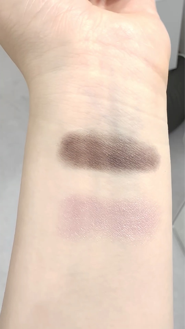 青み寄りのスモーキーカラーが並んでいます。 くすみのカラーが得意なゾーンの人ですが、ラメ、パールのカラーをしっかりと仕込み、くすみを飛ばすとブルベ冬の方でも使いやすいです♡ こういう色を持っているとオフィスメイクをするときに役に立つのでおすすめですよ!