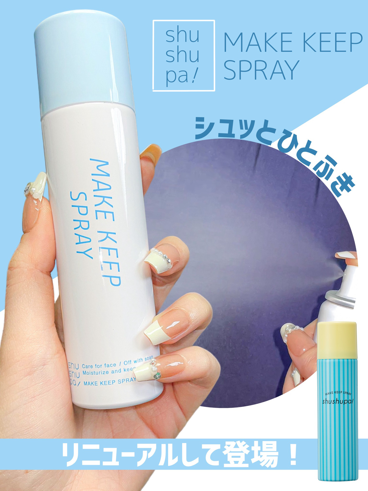 - マスクによるメイク崩れに! 1日中メイクしたてのお肌をキープする メイクキープスプレー ・ふんわり微粒子ミスト ・皮脂崩れ / 乾燥崩れ どちらも防ぐ ・パラベンフリー、エタノールフリー、鉱物油フリー ・無香料で使い心地さっぱり 保湿成分がお肌にうるおいを与えテカリを防止 キープ成分がお肌表面の崩れを防止 うるおってキープするW処方でメイクを守ります!