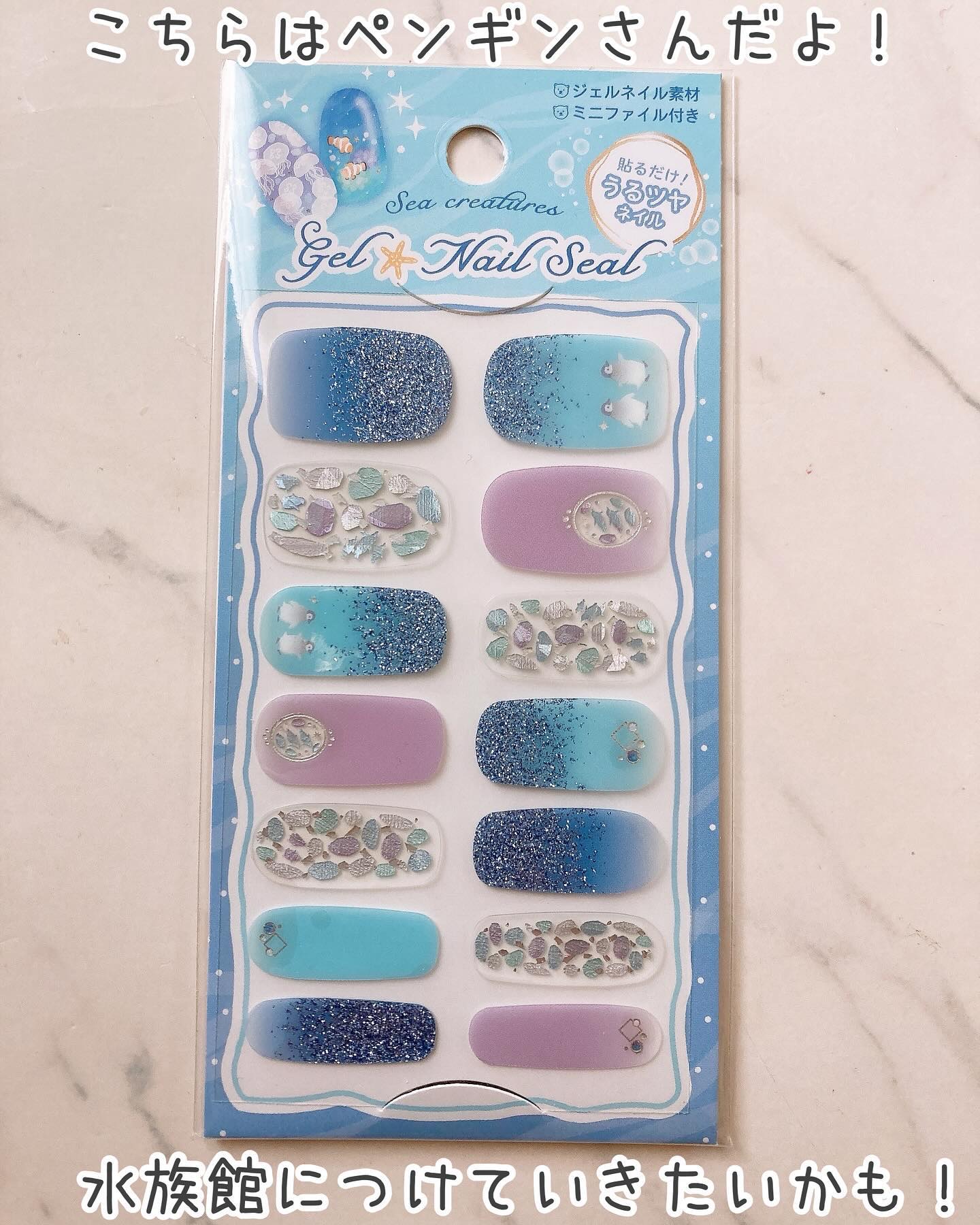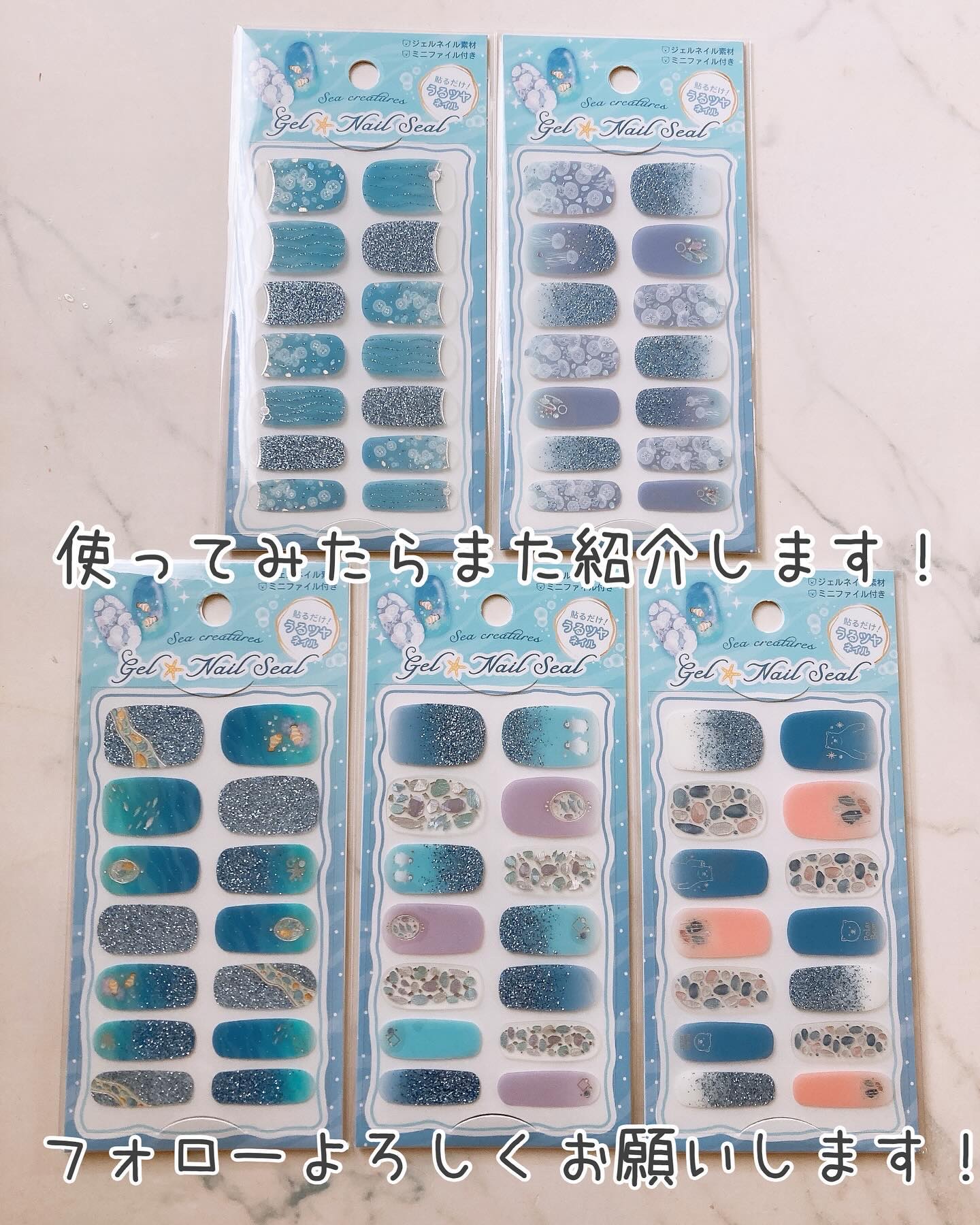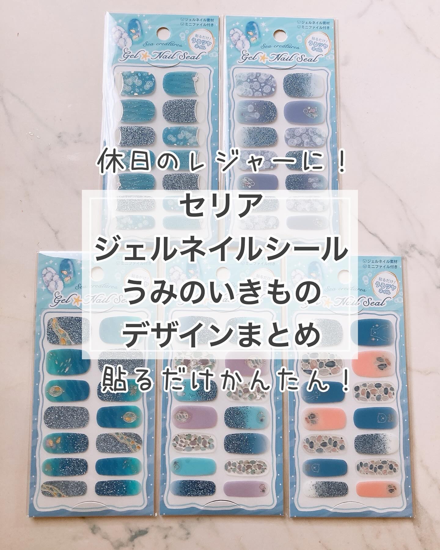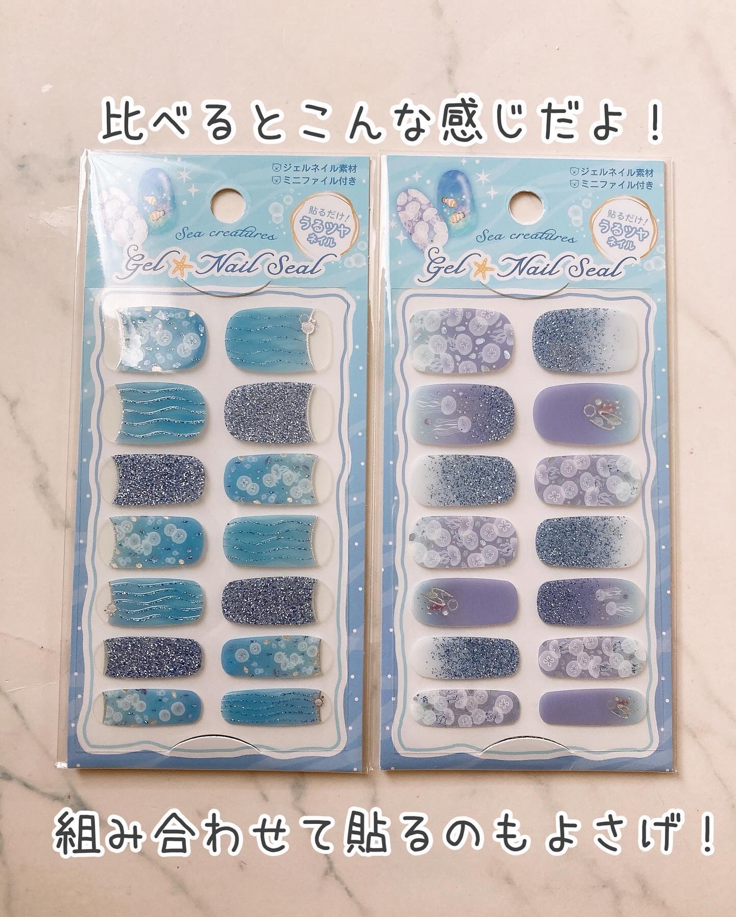 【海ネイルのネイルデザイン】セリア 貼るジェルネイルの口コミ - 超優秀!100均で買えるおすすめネイルシール!今回の新作はブルー系なんだけど今までにない感じ!