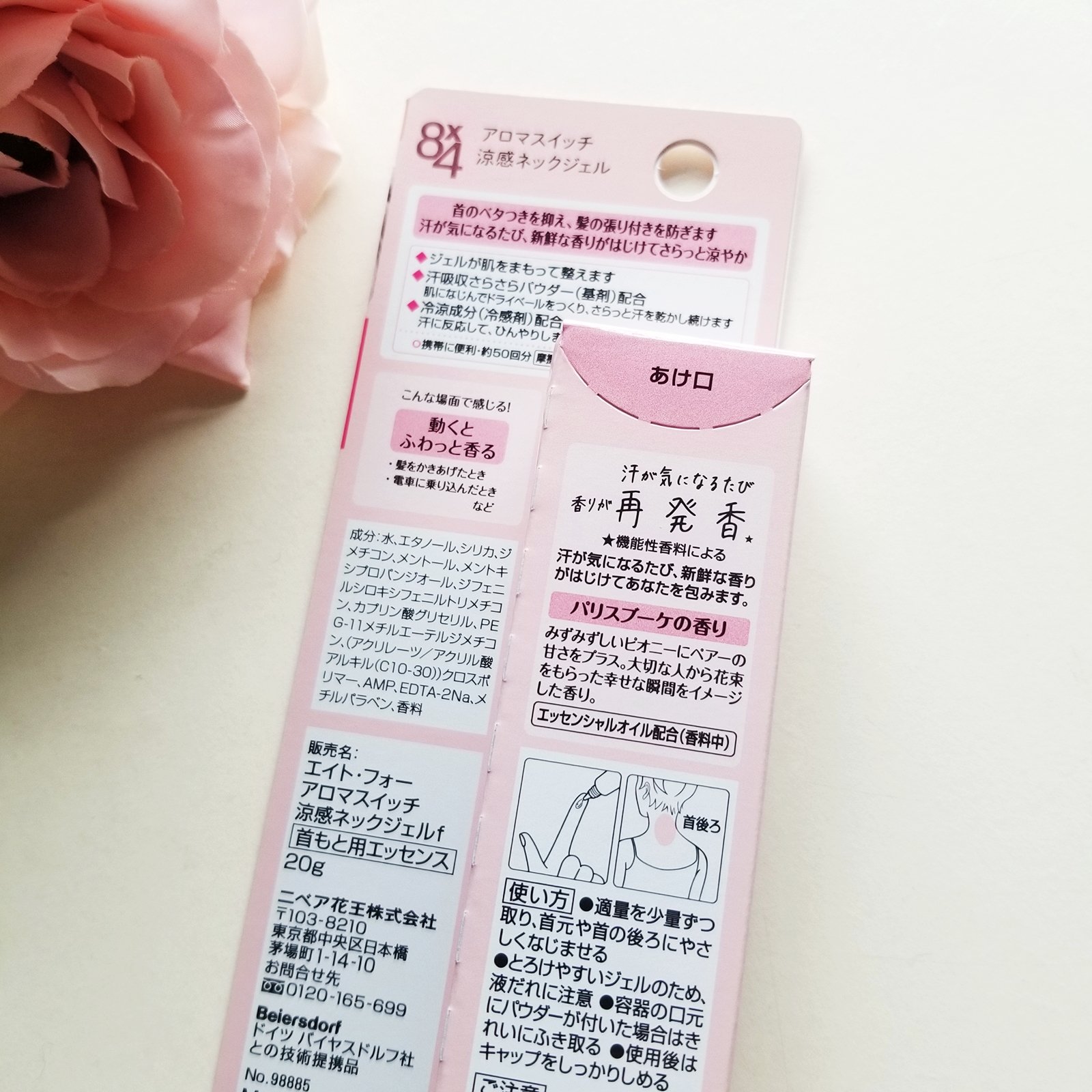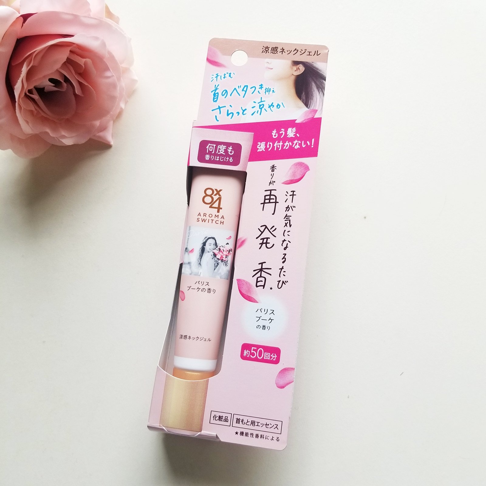 8x4からいただきました。8x4 アロマスイッチ 涼感ネックジェルパリスブーケの香り商品名:8x4 アロマスイッチ 涼感ネックジェル汗ばむ首のベタつき抑えさらっと涼やか 携帯できる汗ケアコスメ首のベタつきを抑え、髪の張り付きを防ぐだけでなく汗...