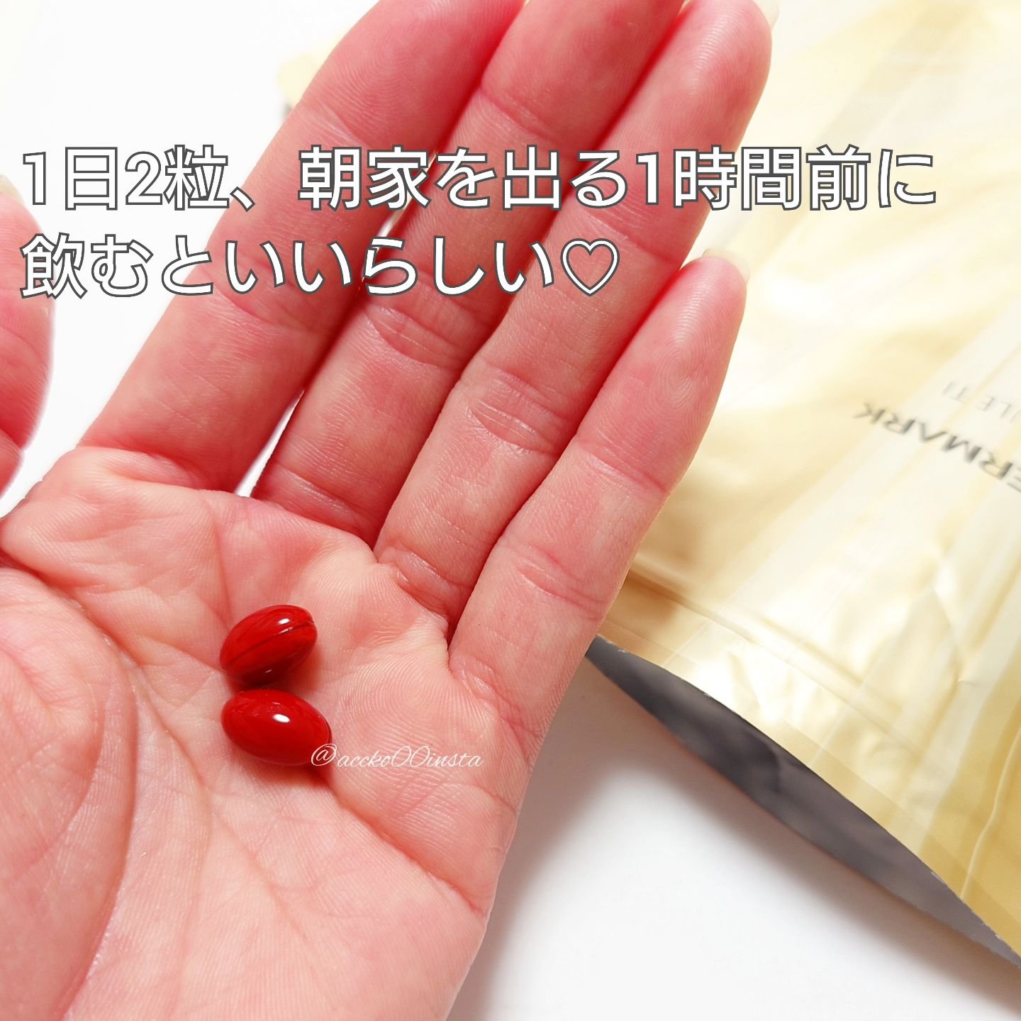 美を応援するクロセチンとボダイジュエキスをバランスよく配合。 自然由来の成分を5種配合「クロセチン」「ボダイジュエキス」「アスタキサンチン」「ブドウ種子エキス」「黒ウコン抽出物」。 赤い粒が特徴的です(*^^*) 飲みやすく、続けやすかったです。