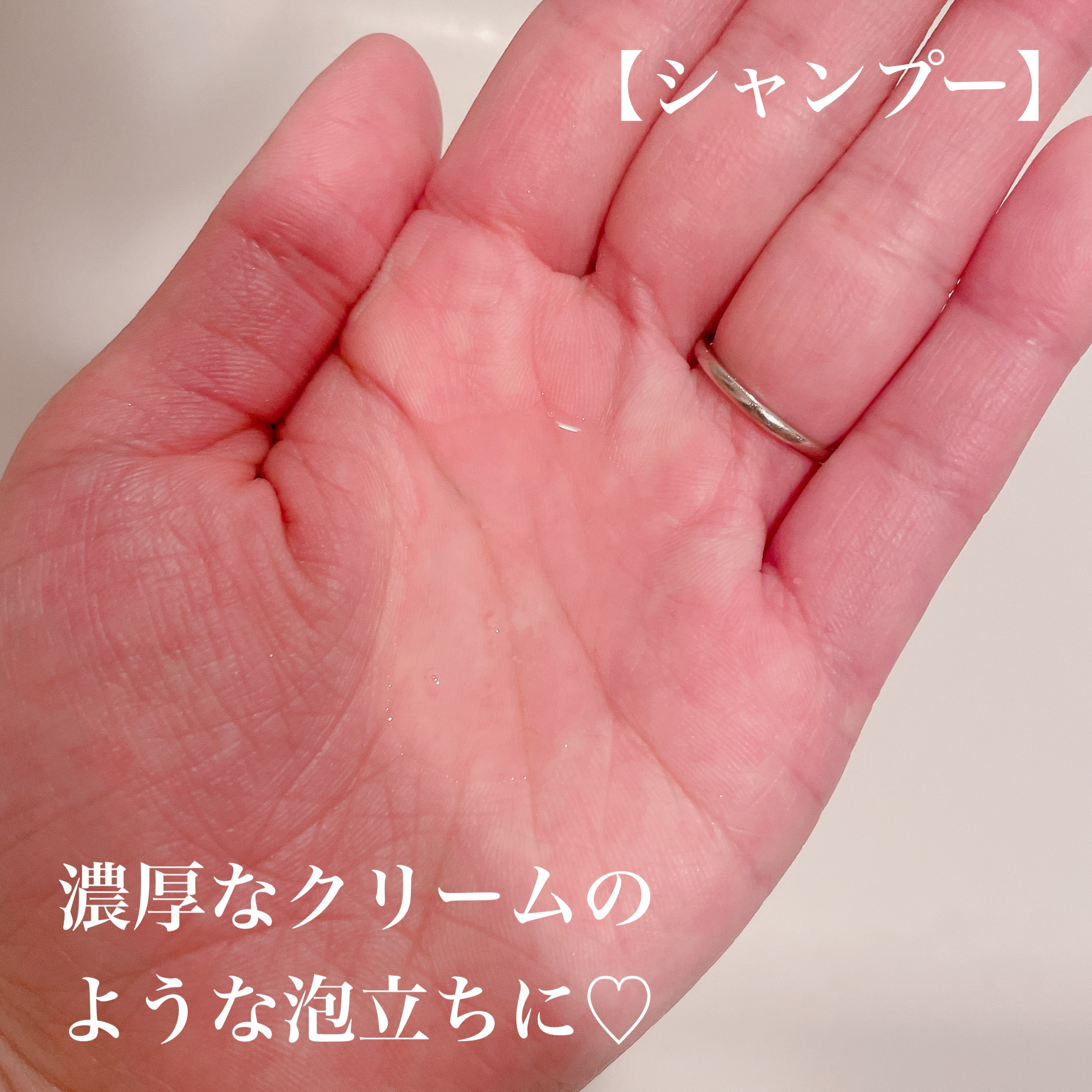 香りがジャスミンのめちゃくちゃ良い香りで 本当のお花みたいで癒されます🥺💓 でも香りは強くないので使いやすいと思います! シャンプーは泡立ちは少し弱めで 洗い上がりは少しきしむけど、 髪のまとまり感はあって軽めの しっとり感がある感じでした☺️✨ 保湿、補修成分美容アミノや 高い保水力のシロキクラゲエキス配合 なのでまとまるうるツヤ髪をキープしてくれます✨ こちらは髪のダメージが気になる方向けの リペア&シャインシリーズで、 パサつきが気になる方はもう一種類の モイスチャー&シャインシリーズがおすすめです❤️