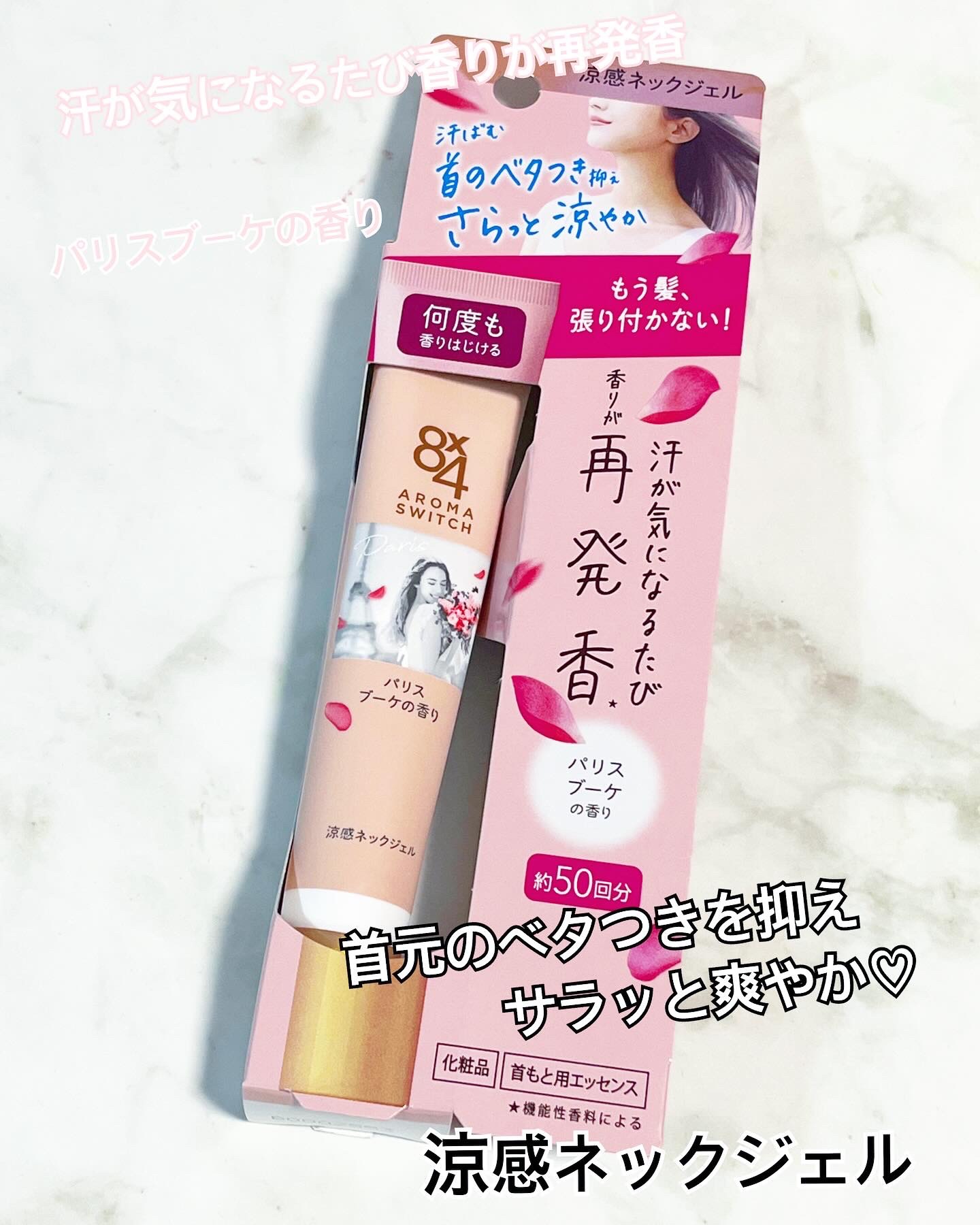 8x4からいただきました。8x4 アロマスイッチ 涼感ネックジェルパリスブーケの香り商品名:8x4 アロマスイッチ 涼感ネックジェル汗ばむ首のベタつき抑えさらっと涼やか 携帯できる汗ケアコスメ首のベタつきを抑え、髪の張り付きを防ぐだけでなく汗...