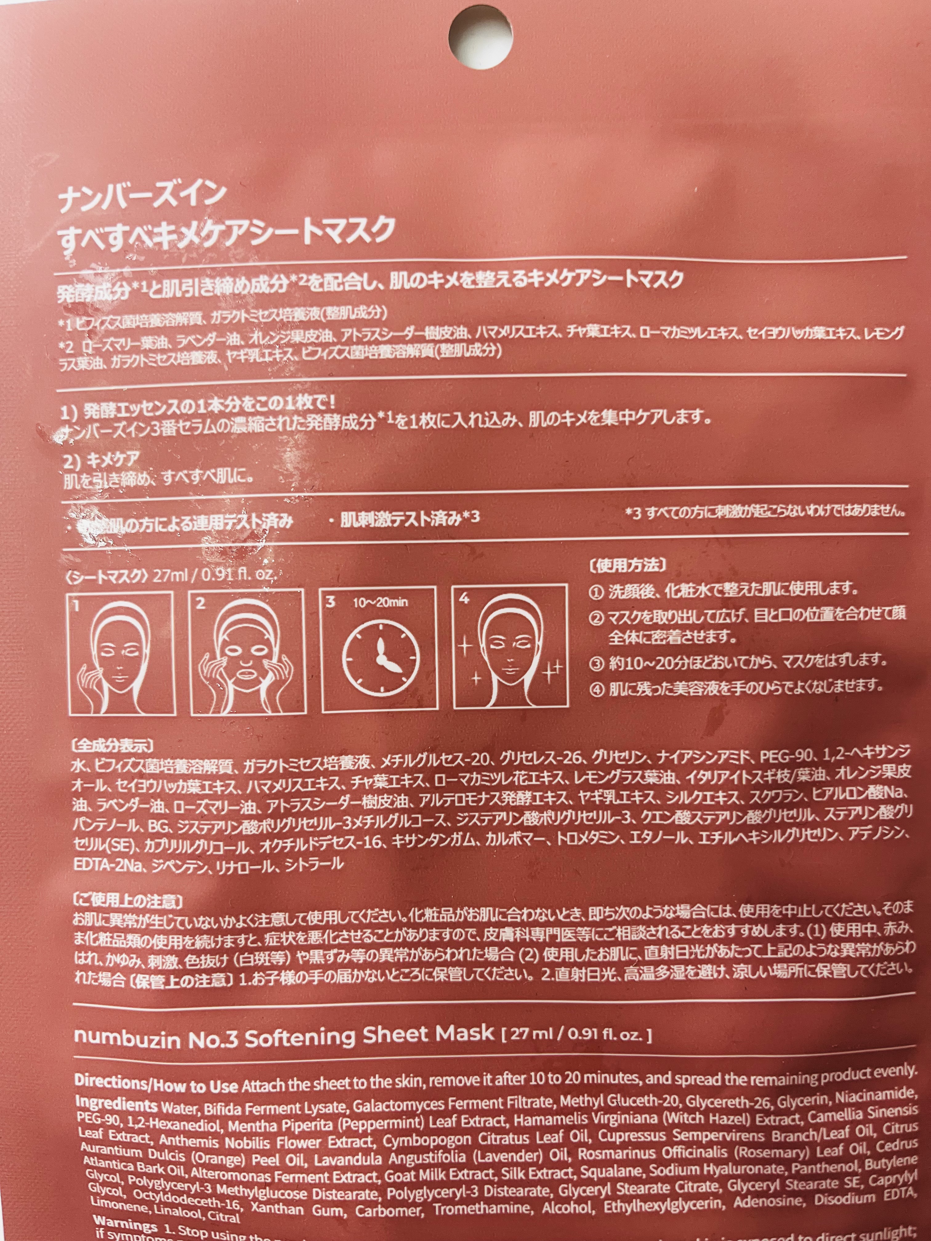 商品詳細情報numbuzin 3番 すべすべキメケアシートマスク