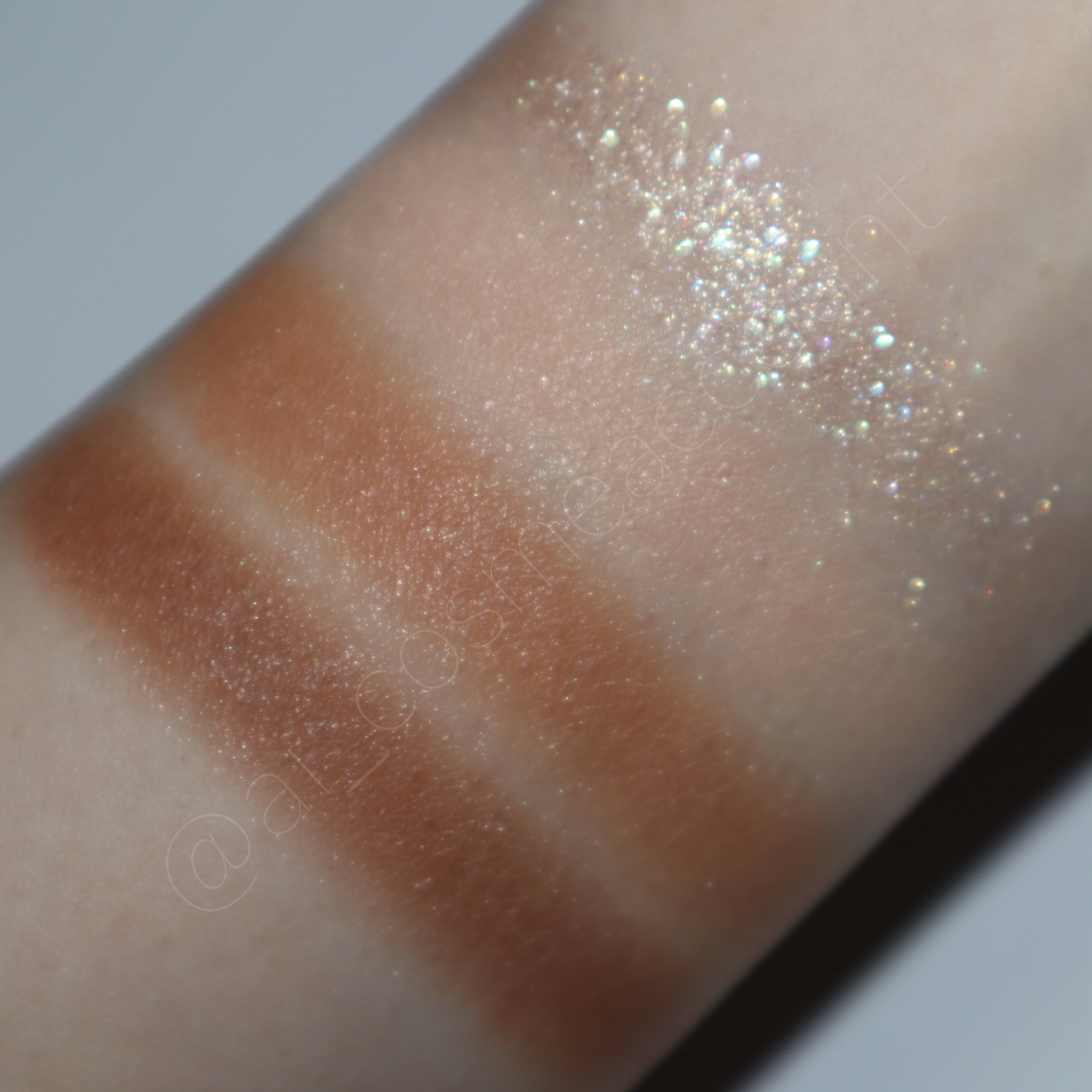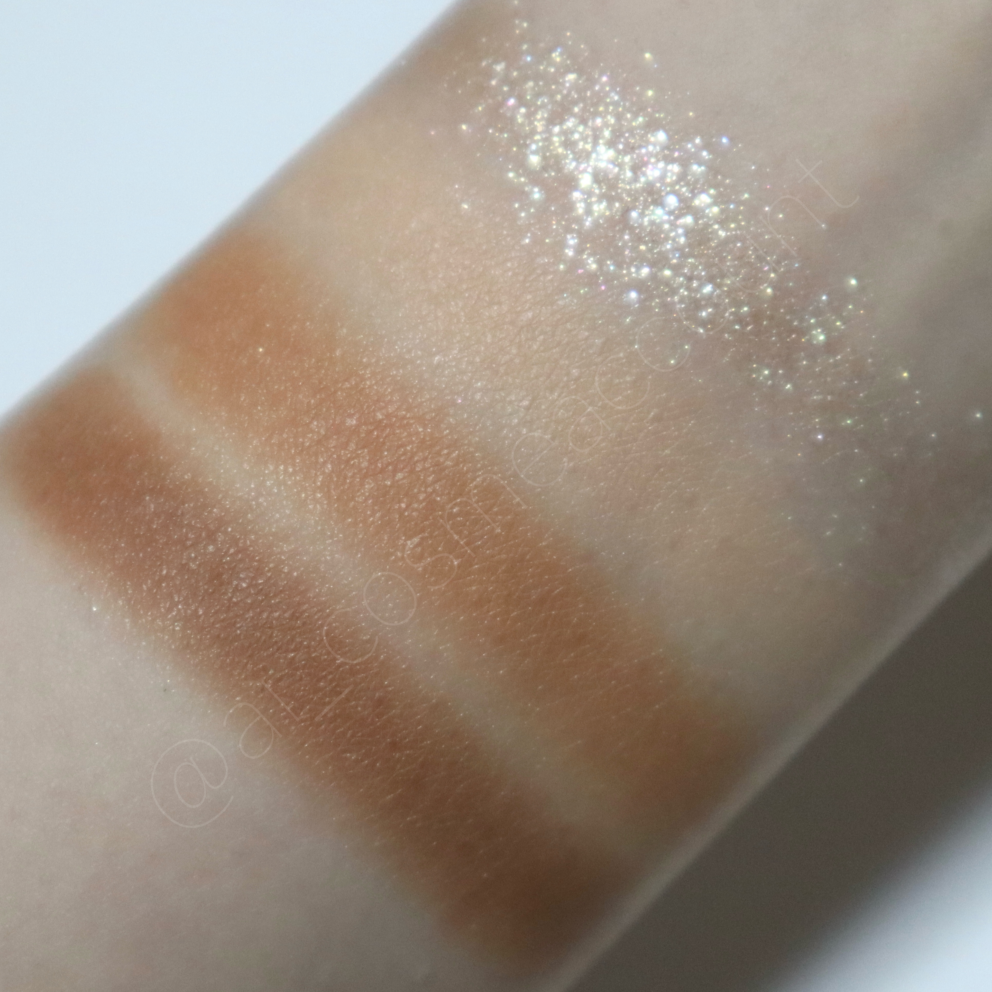 S[SHINY]“高輝度ガラスパール×カラーパールの美しいきらめき”↓S01.ピュアブロンズ“上品に艶めくブロンズゴールド” R[RICH]“リッチな高発色と繊細なツヤで色遊びを楽しめる”↓R01.バニラムスク“光を集めるハイライトベージュ” F[FLUFFY]“ふんわり・しっとりの新感覚 肌と同化するセミマット”↓F01.ラストナイト“血色感を潜ませるメロウなピンク”
