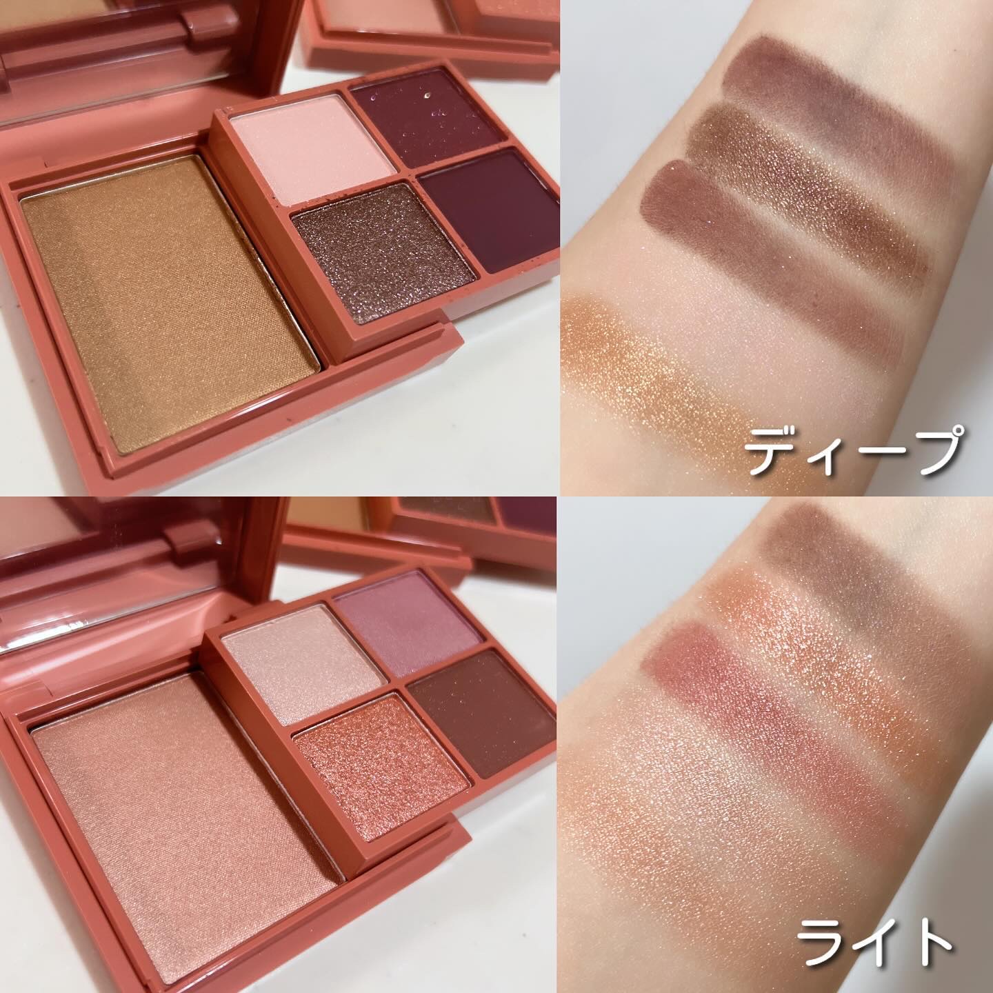 - 〈数量限定〉 ヌーディカラーの4色アイシャドウと輝くチーク兼ハイライト1色が1つになった、 全て新色の限定スペシャルパレット。 重ねづけしやすいシルキーなパウダーで、立体感とツヤのあるニュートラルな魅力を引き出します。