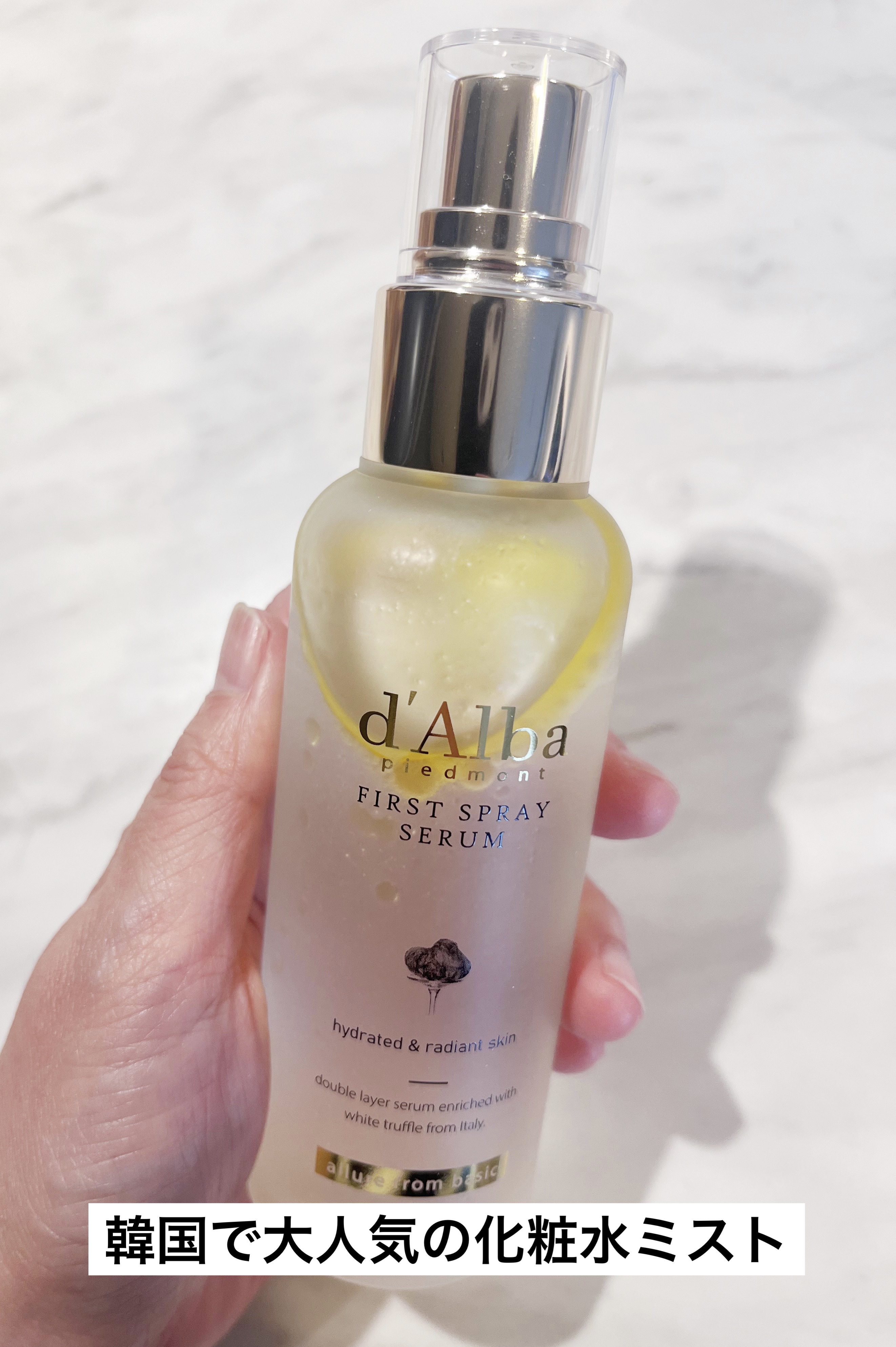 - イタリア産ホワイトトリュフ*と植物性オイルで豊かな水分を与えツヤ肌に仕上げる保湿ケアミストです。肌表面の保湿だけでなく、内側までしっかり二重で保湿可能。さらにダルバ独自のトリュフェロールTMが肌に弾力を与えます。霧のような細かなミストで洗顔後やお風呂上り以外のメイクの上からでもメイクを邪魔することなく使用することができます。 *ツベルマグナツムエキス(保湿成分) イタリアヴィーガン認証V-LABEL取得 皮膚低刺激テスト済み *全ての方に皮膚刺激が発生しないということではありません。 【ご使用方法】 1. 洗顔後、3~5回振って中身が十分に混ざった後、顔全体にまんべんなく噴射して軽くたたいて肌に馴染ませます。 * 鼻や口から吸い込まないように注意してください。 【使用上の注意】 お肌に異常が生じていないかよく注意して使用してください。化粧品がお肌に合わないとき即ち次のような場合には、使用を中止してください。そのまま使用を続けますと、症状を悪化させることがありますので、皮ふ科専門医等にご相談されることをおすすめします。 (1)使用中、赤味、はれ、かゆみ、刺激、色抜け(白斑等)や黒ずみ等の異常があらわれた場合 (2)使用したお肌に、直射日光があたって(1)のような異常があらわれた場合