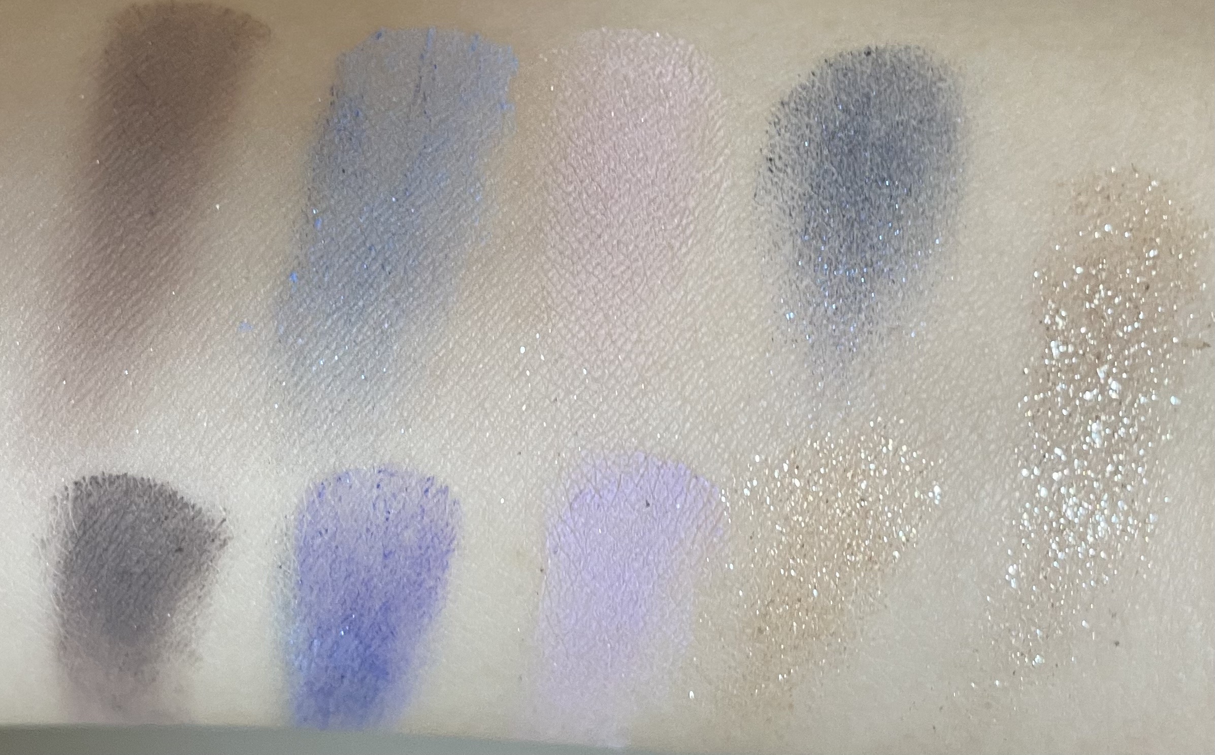 フラワーノーズのパケは本当にゴージャスでステキ ごつくて収納に優しくないけどここまで振り切ってればもう仕方ない 粉質はふわさら系 発色もひかえめ 彩度抑えたパレット ミュートメイク向けですかね🤔 その分ラメがもうギラッギラ でも下品なギラギラじゃないのがうまく作ってるよね✨