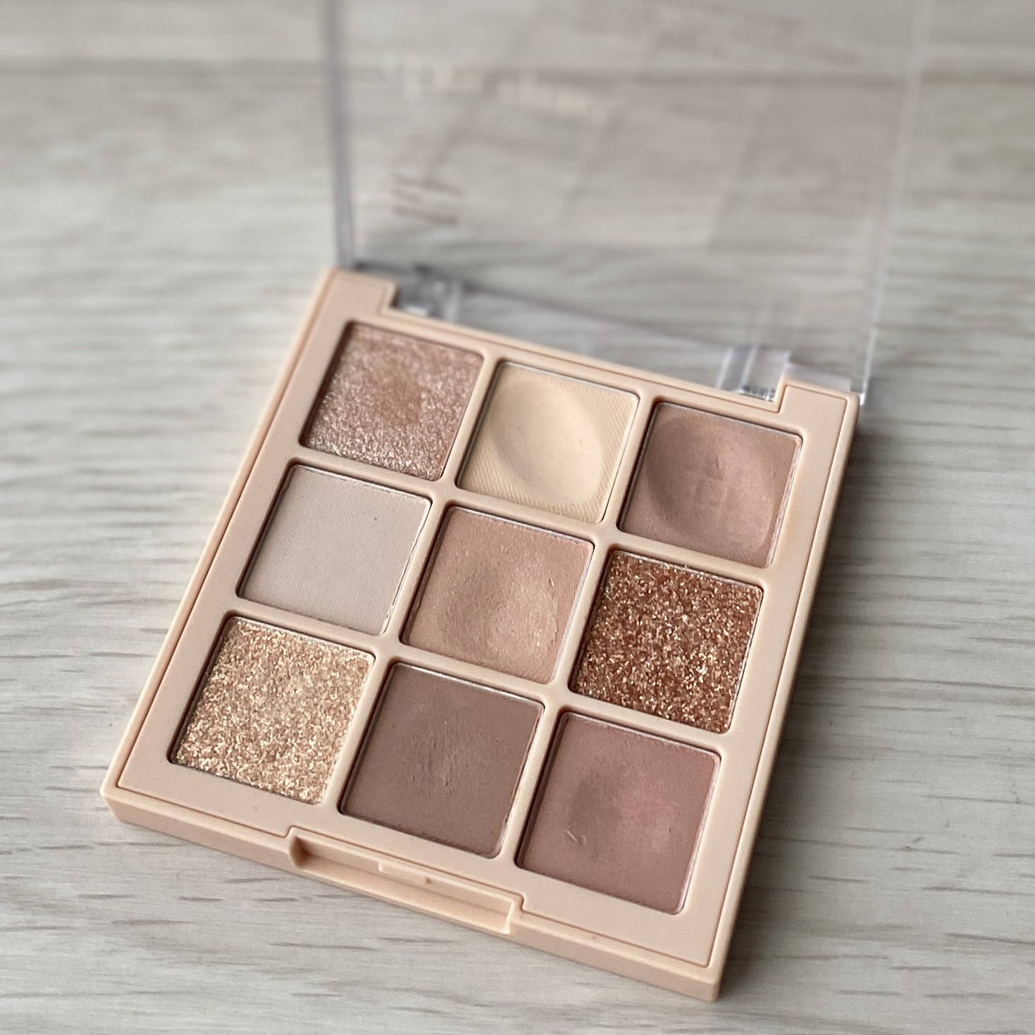 微細な粒子と優れた密着力で長時間綺麗なカラーを維持。 幻想的なヌードカラー コスパが良い パレットがかわいい コンパクトな大きさだけど9色入っている ほんのり薄づき だけど見たまま発色してくれる 色味は使いやすい肌馴染みの良いヌードカラー どの色もイエベにピッタリってかんじ! 目がキラキラしてとってもかわいい😍 大人メイクにぴったりです♫