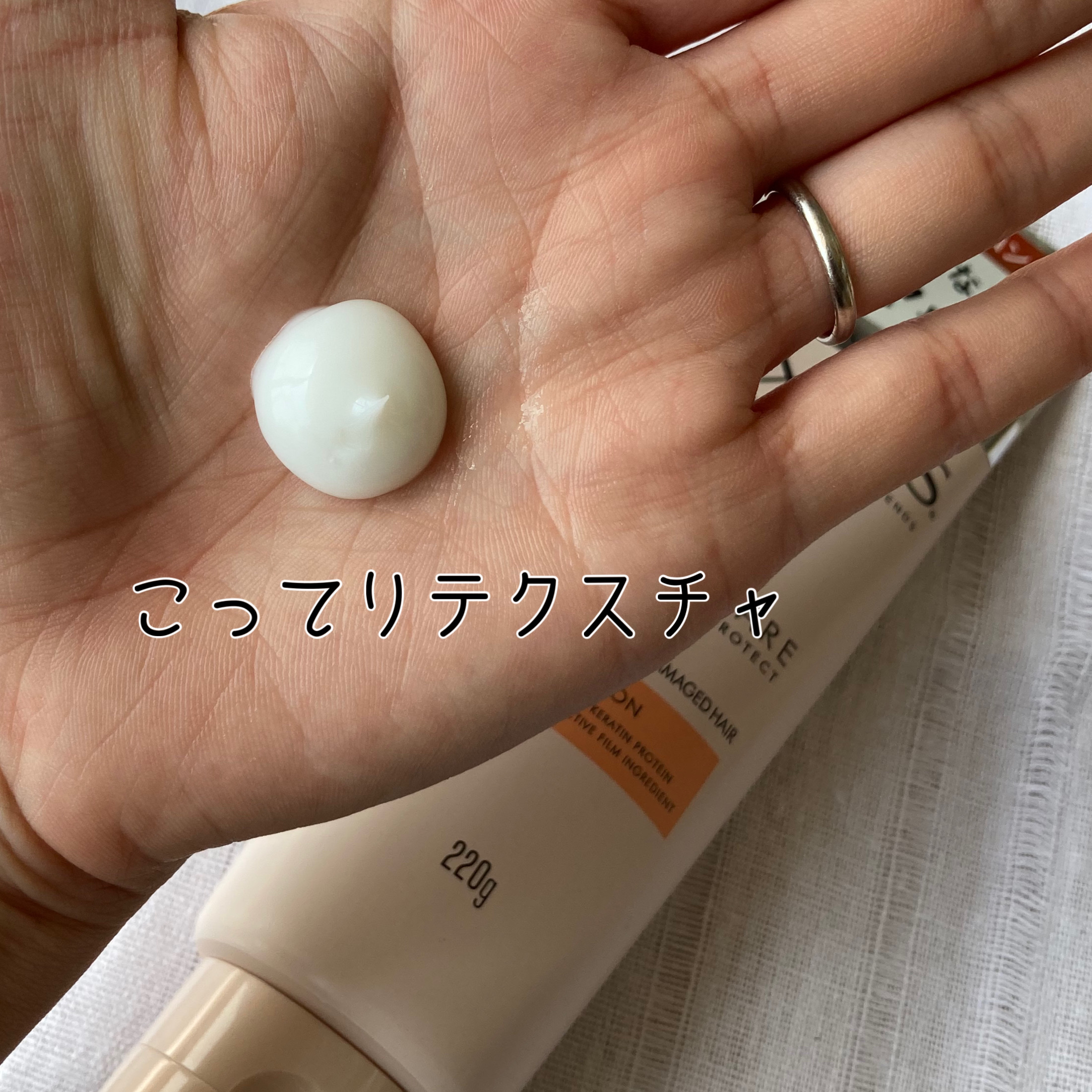 | 手に取ったときはコックリとしたクリーム状だけど、髪にするすると馴染ませていくうちに、とろとろの質感に変化。 | 詳細を見る | ||