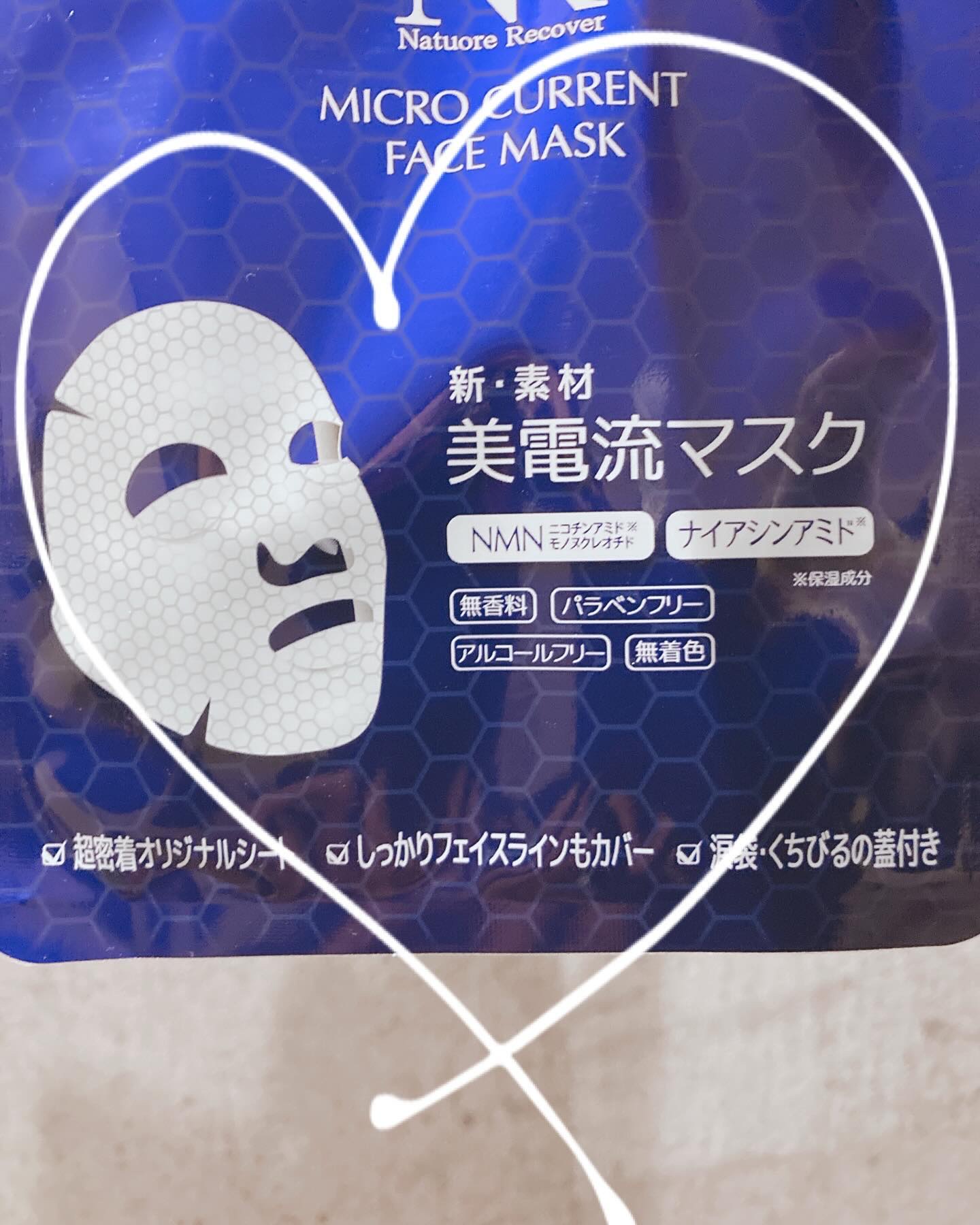 NatuoreRecover美電流マスク¥440/枚◆人が本来もつ、身体のプラス・マイナス電流(生体電流)にフェイスマスクが反応し、肌のキメを整え、ハリ、ツヤアップ。リフトアップ効果も期待。◆注目の美肌成分NMN(ニコチンアミドモノヌクレオチ...
