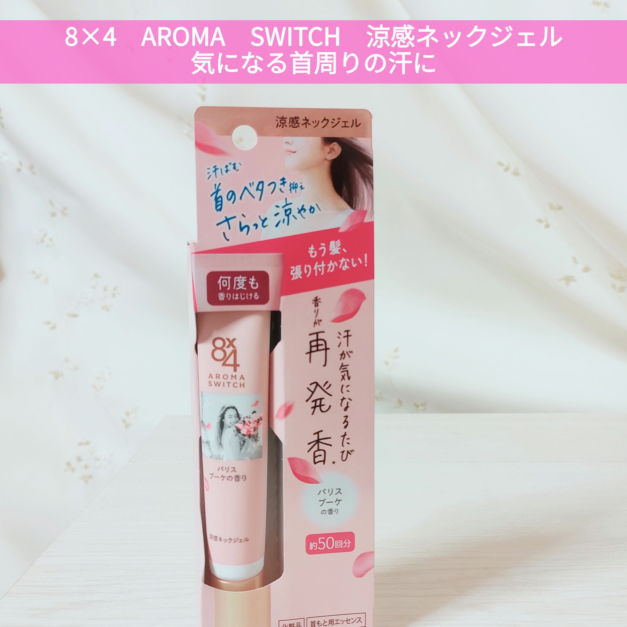 8x4からいただきました。8x4 アロマスイッチ 涼感ネックジェルパリスブーケの香り商品名:8x4 アロマスイッチ 涼感ネックジェル汗ばむ首のベタつき抑えさらっと涼やか 携帯できる汗ケアコスメ首のベタつきを抑え、髪の張り付きを防ぐだけでなく汗...