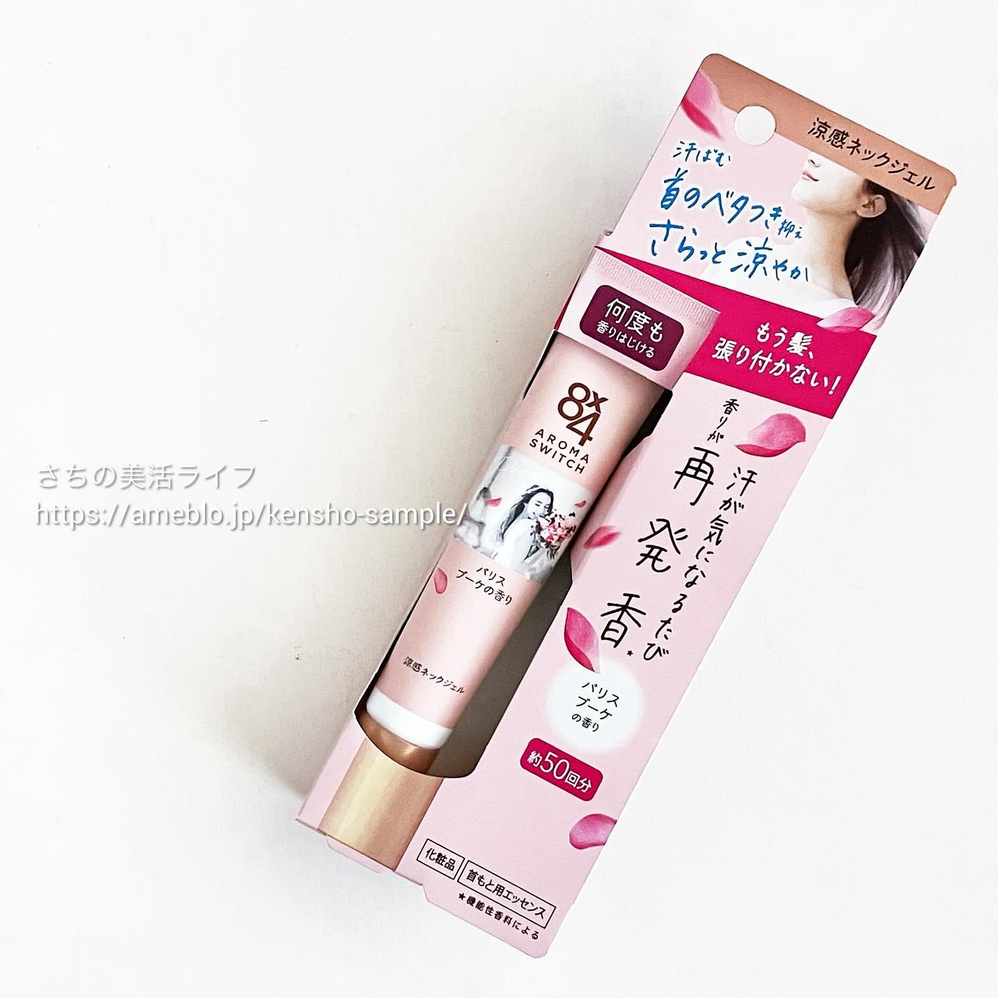 - 首のベタつきを抑え、髪の張り付きを防ぎます 汗が気になるたび、新鮮な香りがはじけてさらっと涼やか ●ジェルが肌をまもって整えます ●汗吸収さらさらパウダー(基剤)配合 肌になじんでドライベールをつくり、さらっと汗を乾かし続けます ●冷涼成分(冷感剤)配合 汗に反応して、ひんやりします ●汗が気になるたび香りが再発香(*2) 汗が気になるたび、新鮮な香りがはじけてあなたを包みます (*2)機能性香料によるカバーリング効果 ●摩擦に強く落ちにくいこすれプルーフ処方 ●携帯に便利なサイズ。約50回使えます ●海外の都市やシーンをイメージした3種類の香り いずれもエッセンシャルオイル配合(香料中)。 パリスブーケの香り:みずみずしいピオニーにペア一の甘さをプラス。大切な人から花束をもらった幸せな瞬間をイメージした香り