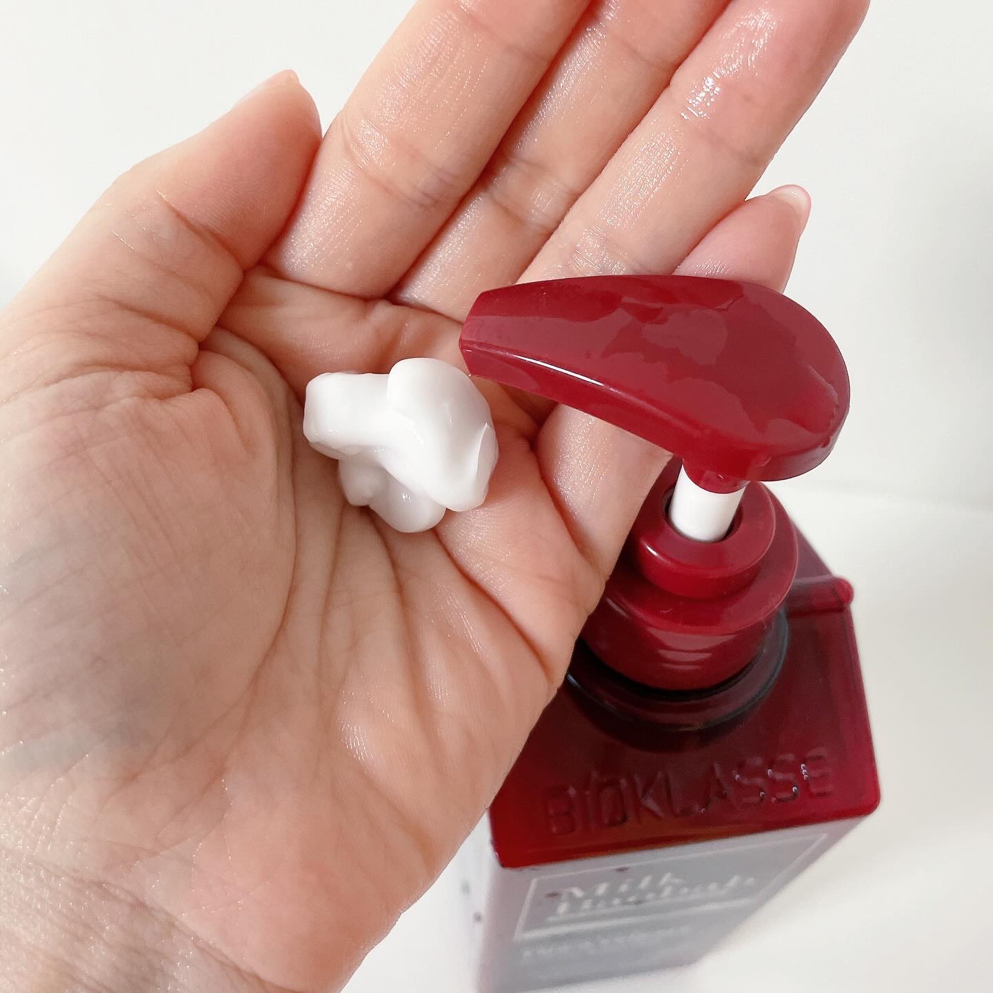 香水のようないい香りのミルクバオバブのパフュームシャンプーとトリートメント〔ホワイトムスク〕 泡立ちは濃密でキメ細かな泡🫧 シャンプーだけでも指通りがなめらかに感じられました🙌 心が思わずときめくような繊細でやさしくでも深みも感じるふんわりムスクの香りなんです♡