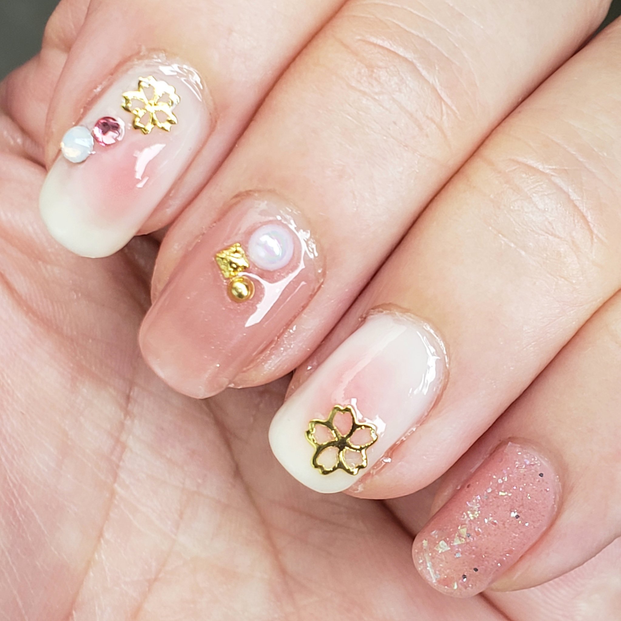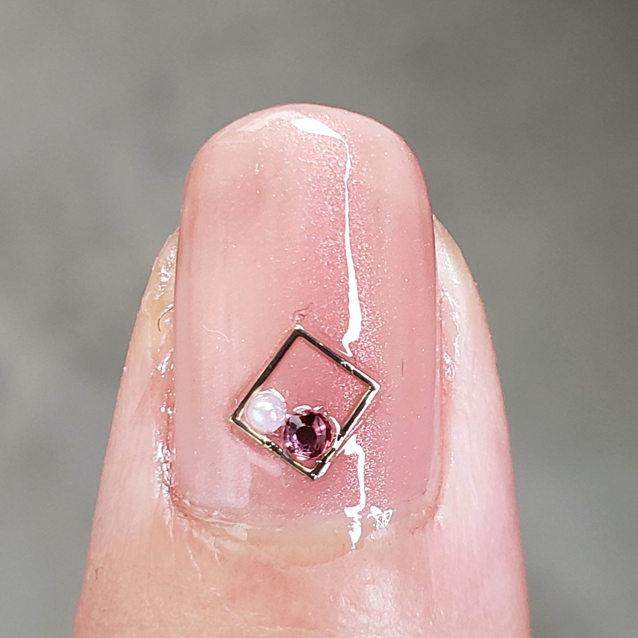 ポイントとしては、ガラスフレンチ部分は一息でやること…かな。 手順でいうと②~④だね。ベースにしたローズミルクティーが乾いたら、フレンチラインをひくところからメタルホロを貼り付けるところまでサッサッサッと💨 下準備として、メタルホロはちょうどいい大きさに切っておくと作業がスムーズ◎ それから、メタルホロを使うときは下にティッシュかキッチンペーパーを敷いておくと片付けもラク◎ 指一本ずつの作業だから、ネイルにかかる時間がかなり長くなるけど、やっぱりガラスフレンチは可愛い🖤