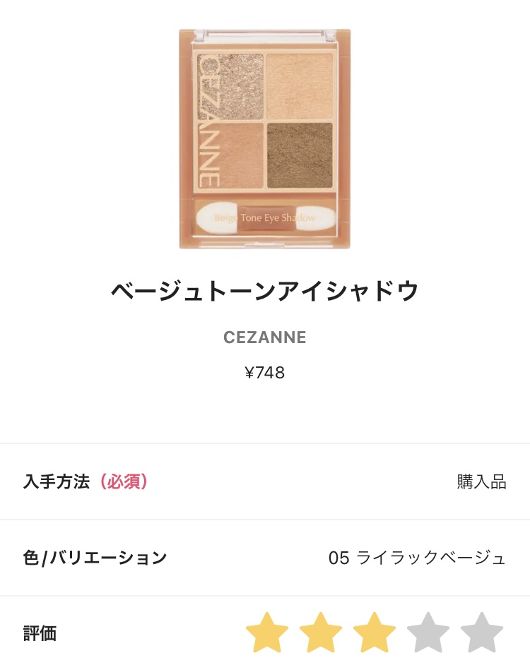 CEZANNE ベージュトーンアイシャドウ | 748円 |