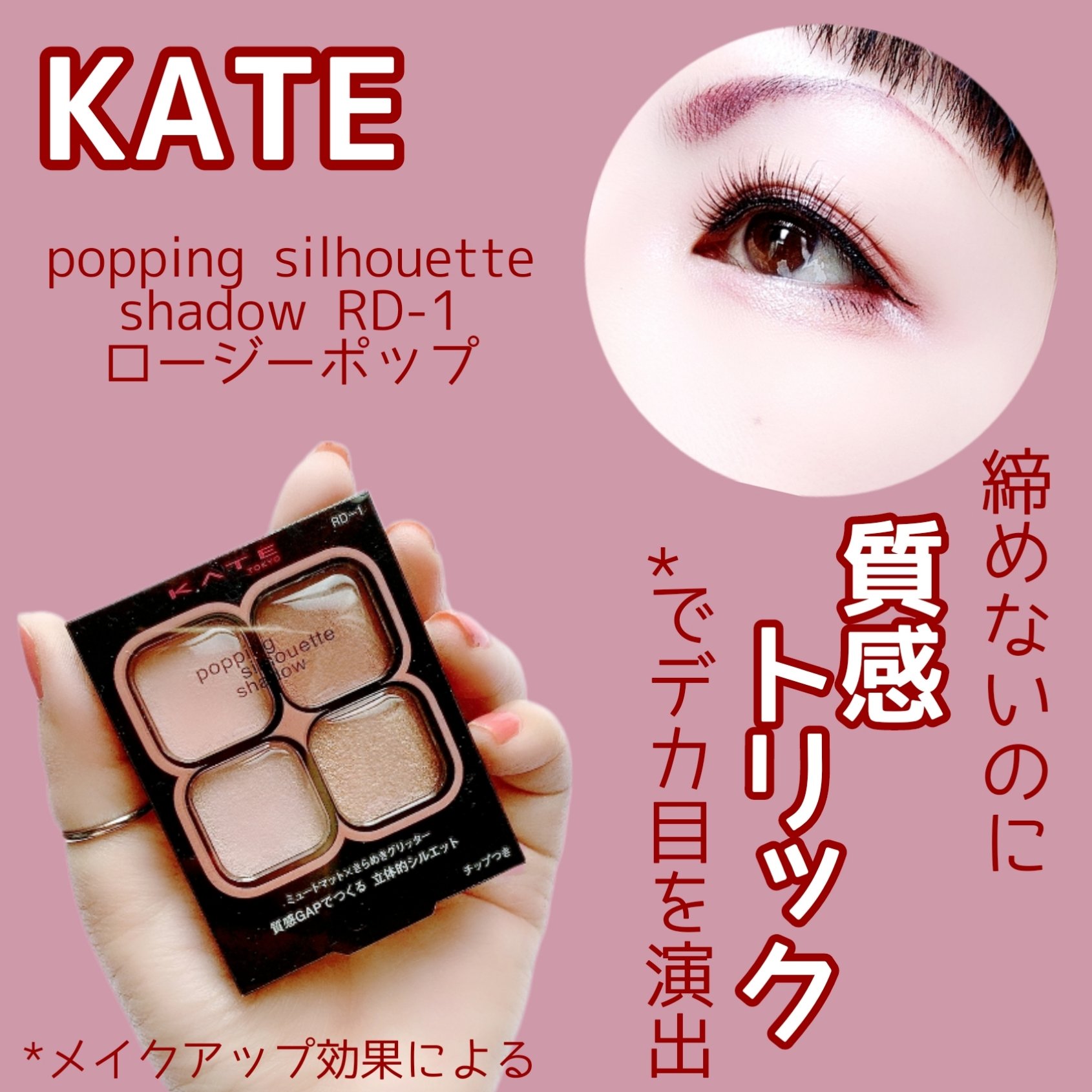 くすみピンクが可愛すぎるロージーポップ💗❤︎︎︎︎❤︎KATEケイトポッピングシルエットシャドウ¥1,540❤︎︎︎︎❤︎ケイトポッピングシルエットシャドウ質感トリックで、クリッと丸い2.5次元アイに仕上がるポッピングシルエットシャドウミュー...