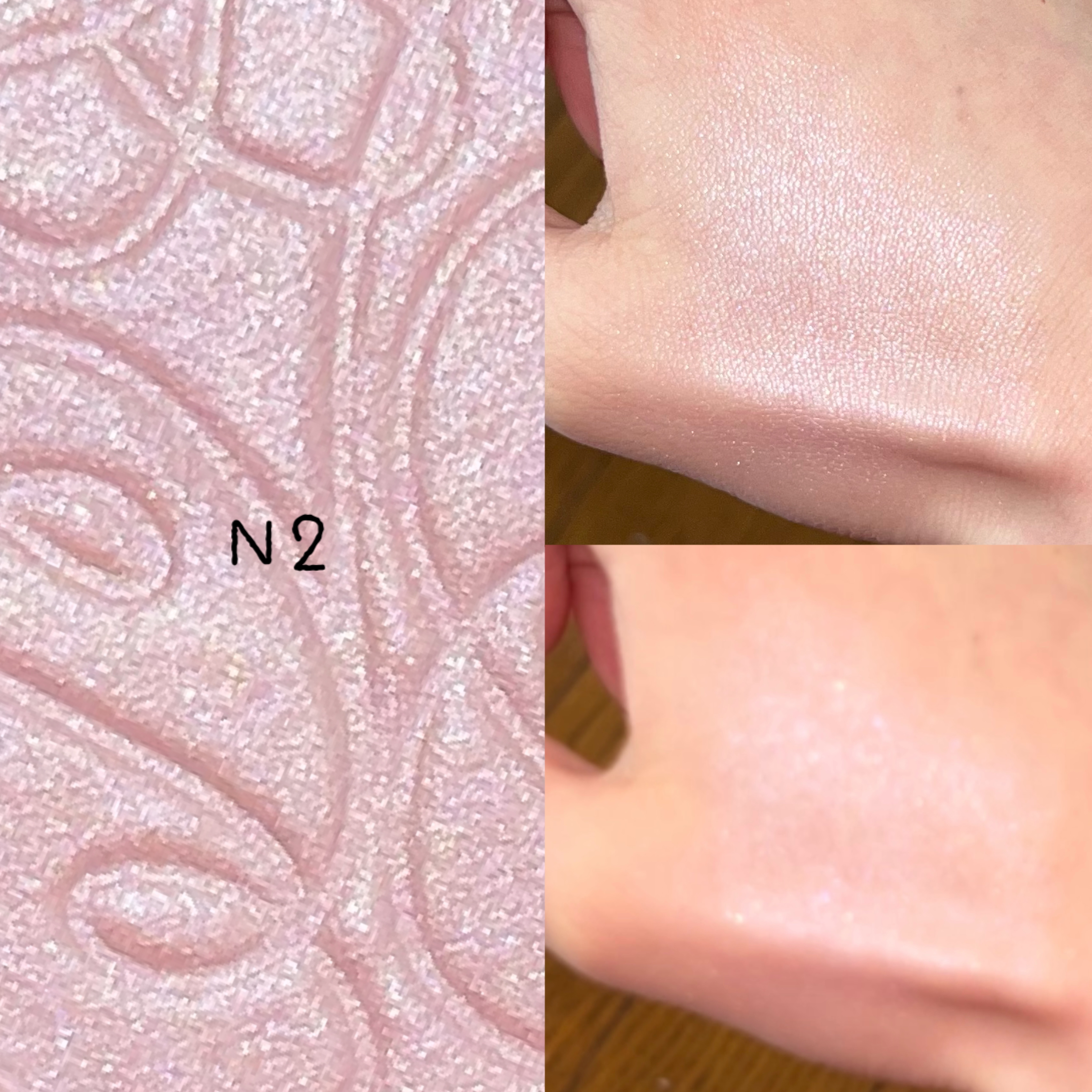 透明感あふれるライラックカラーの輝きをふんわり足してくれるニュアンサー✨ 色味も輝きも強すぎないのでどんなチークとも合わせやすいと思います スウォッチは付属のブラシで塗りました 動画は照明の当たる所で撮影しました