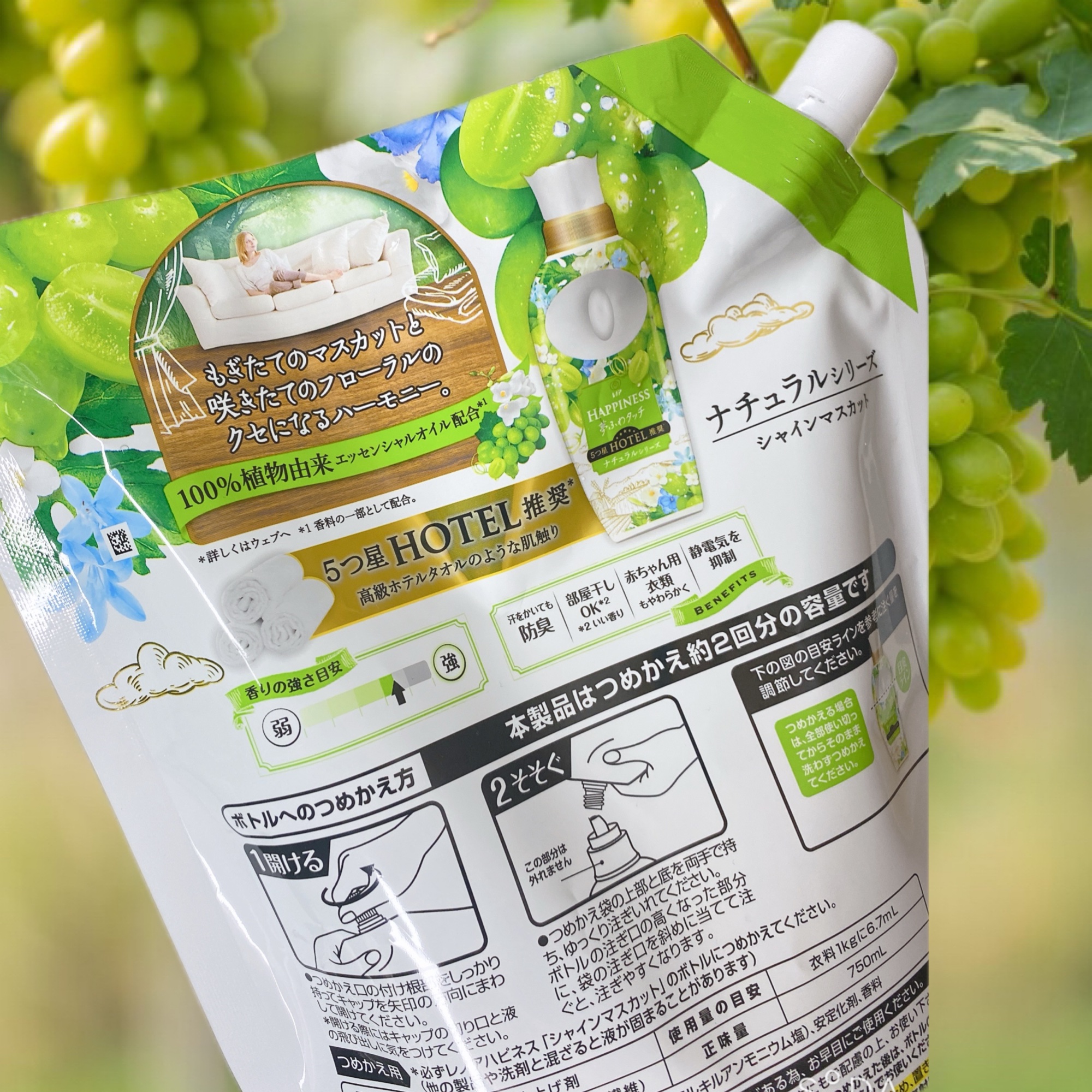 シャインマスカット美味しくて大好きなのですが、こちらはどうかな🤔?✍レノア HAPPINESS夢ふわタッチシャインマスカット残り湯洗濯、部屋干しタイプの私ですがこちらはマスカット?がふんわり香る程度です臭くはならないので🙆かな〜リピは微妙です...