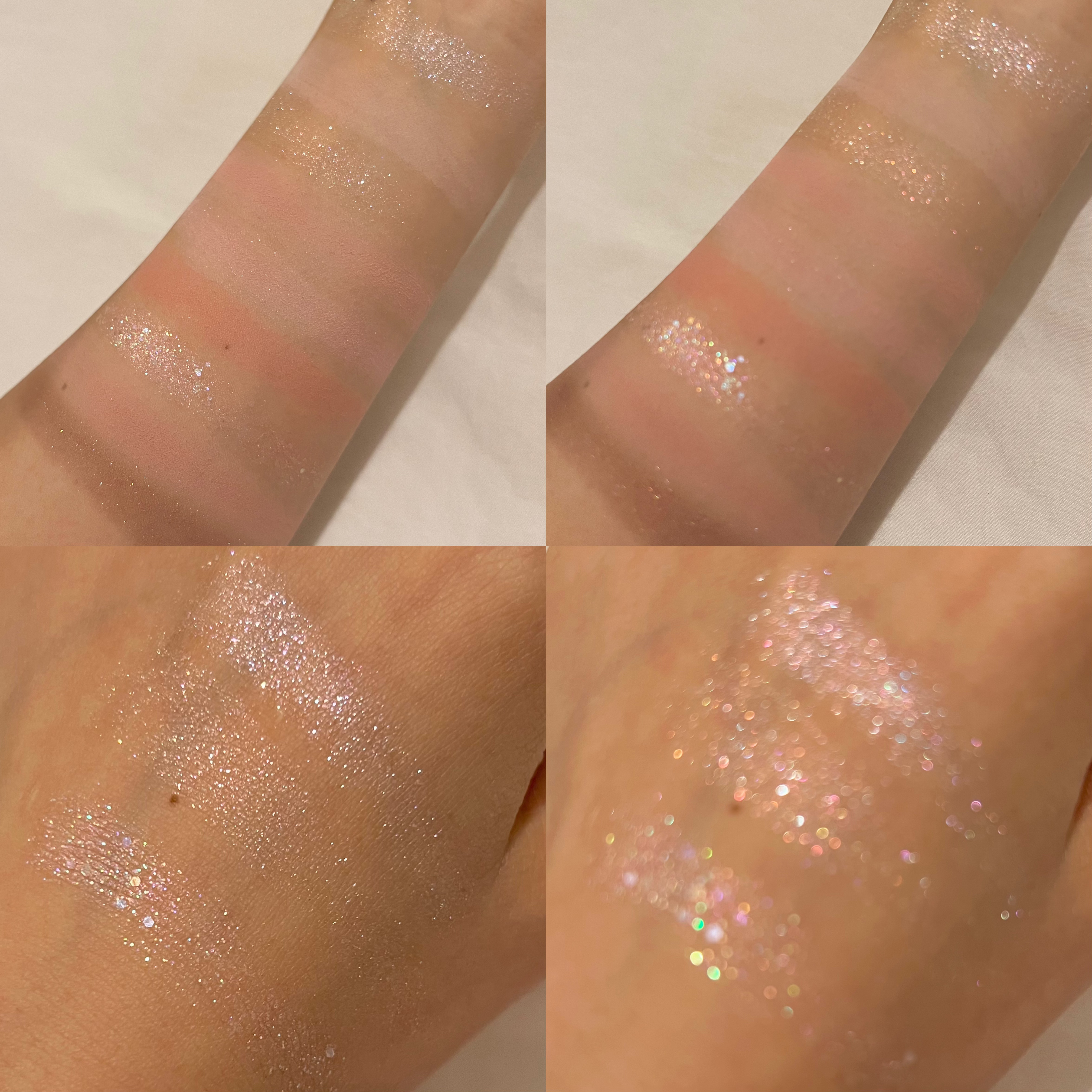 色味もラメも天才ですか🥹?盛れすぎ注意パレット🐷💕 イエベもブルベも使える、肌馴染み良すぎるローズピンクでまとめられたパレット! 色味めちゃくちゃ可愛いし、とにかくラメが天才すぎる✨️ キラキラ強くてポイントで乗せても、目尻とかに乗せても目に光が入って激カワ😍