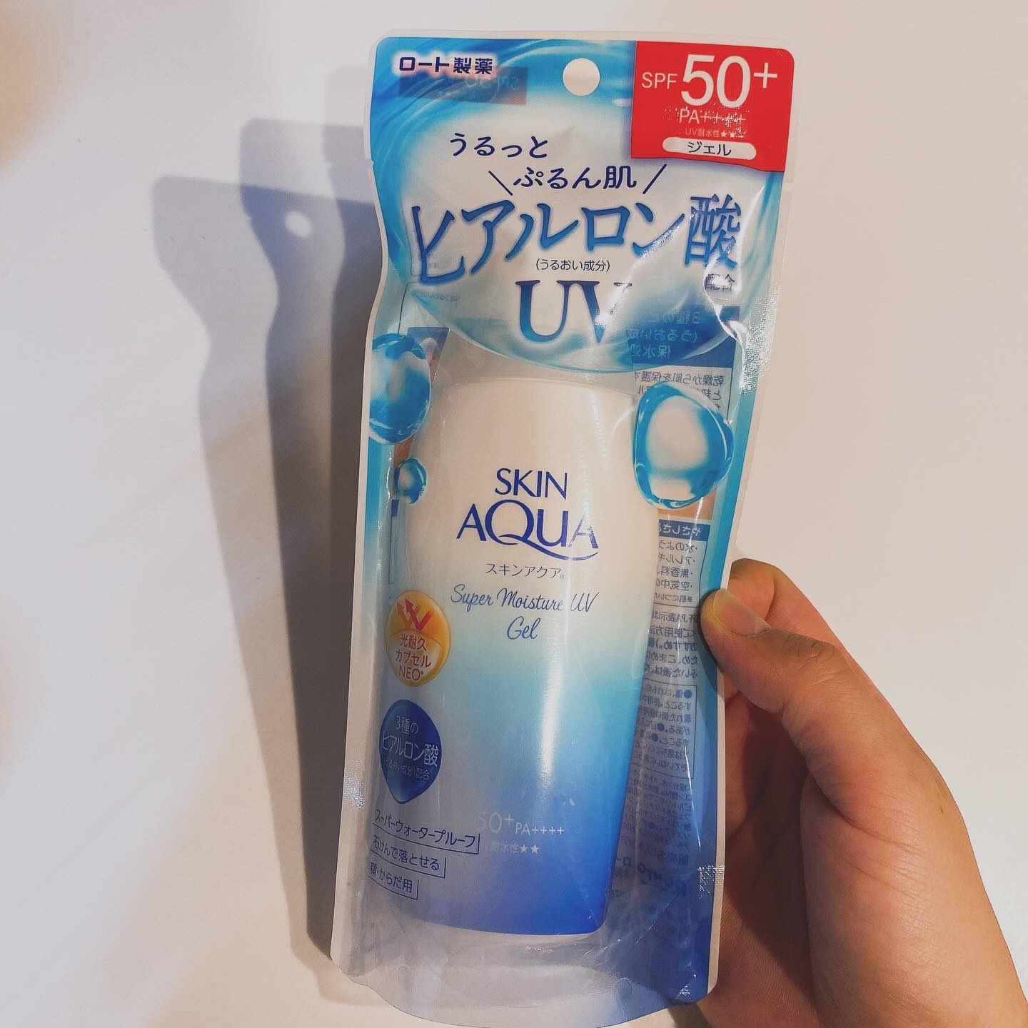 - 塗るたび肌がうるおう日焼け止め。 厳選された3種のヒアルロン酸配合で乾燥から肌を保護します。 スーパーウォータープルーフ。 幅広い紫外線をブロックします。 全身にのばしやすいジェルタイプ。 SPF50+、PA++++、UV耐水性★★。 水のようなつけ心地。 4つのうるおい成分「スーパーヒアルロン酸、ヒアルロン酸Na、アミノ酸、コラーゲン」配合!やさしさへのこだわり。 「アレルギーテスト済み*1、無香料、無着色、鉱物油フリー」。 「スキンアクア スーパーモイスチャージェル」は、最高のUVカット効果*2をもつみずみずしいジェルタイプの日やけ止め。 光耐久技術採用!光によるUVカット機能の低下が起こりにくい独自成分配合。 石けんでするんと落とせます。顔・からだ用で、化粧下地にもオススメです。 たっぷり使えるボトルの110g、大容量ポンプの140gをご用意。 *1:すべての方にアレルギーが起こらないというわけではありません。 *2:スキンアクアシリーズ内。 紫外線防止成分:紫外線吸収剤
