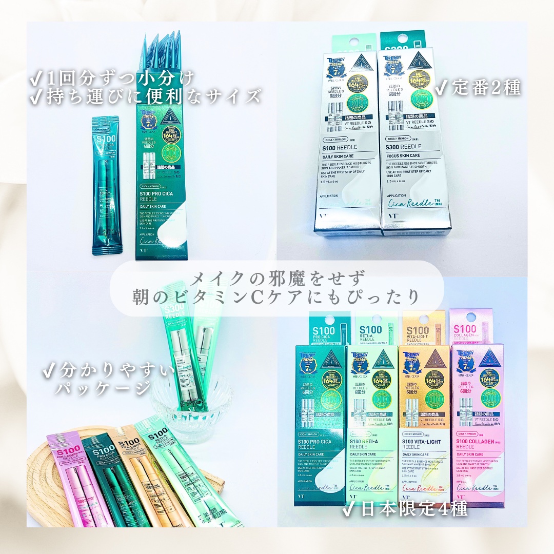 大人気のリードルショット100を4種もお試しできちゃう最高すぎるセットです🥹 個包装なので旅行などの持ち運び用にもぴったり💫 コラーゲン成分配合で肌にもっちりとした弾力を与えてくれる効果が期待できます👏 3包しか使っていませんが、使用前よりお肌にハリが出てきたように感じました😳 ビタミンC/B3/E配合で、パサつきくすんで見えるお肌を光彩感溢れるツヤ肌に導いてくれます🙌 薄いオレンジ色をしたジェル状のテクスチャーで、お肌にスッと馴染んで使いやすかったです🪄