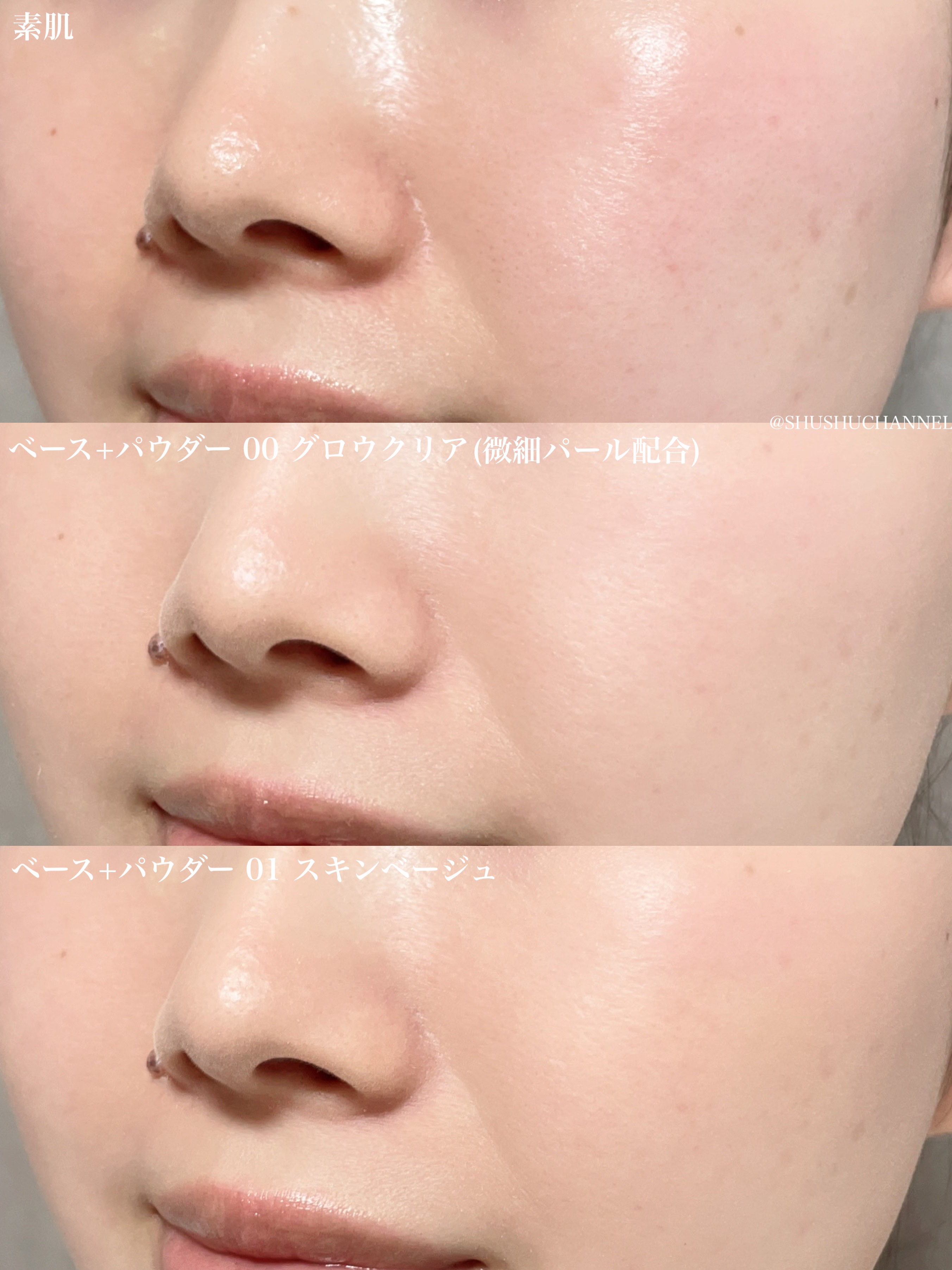 白いハイライトは凄かった!!! 白いハイライトは発光するというよりはマット寄り もうひとつはガッツリ発光するパールハイライト ハイライトも質感を2種類組み合わせるとより肌が立体的にみえるので是非試してみてください🫶✨