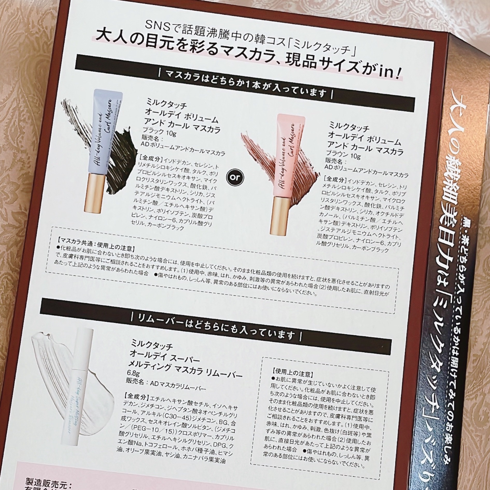 Milk Touch オールデイ ロング アンド カール マスカラ | 1,628円 |