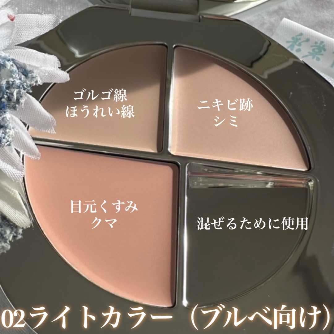 生チョコのような質感、みずみずしく肌に密着◡̈ もちもちとした生チョコのような質感で、肌との密着性に優れ、肌に自然になじむコンシーラーです♡ 色ムラやニキビ跡、シミ、ほくろなどの肌悩みを一つのパレットでカバーできます。