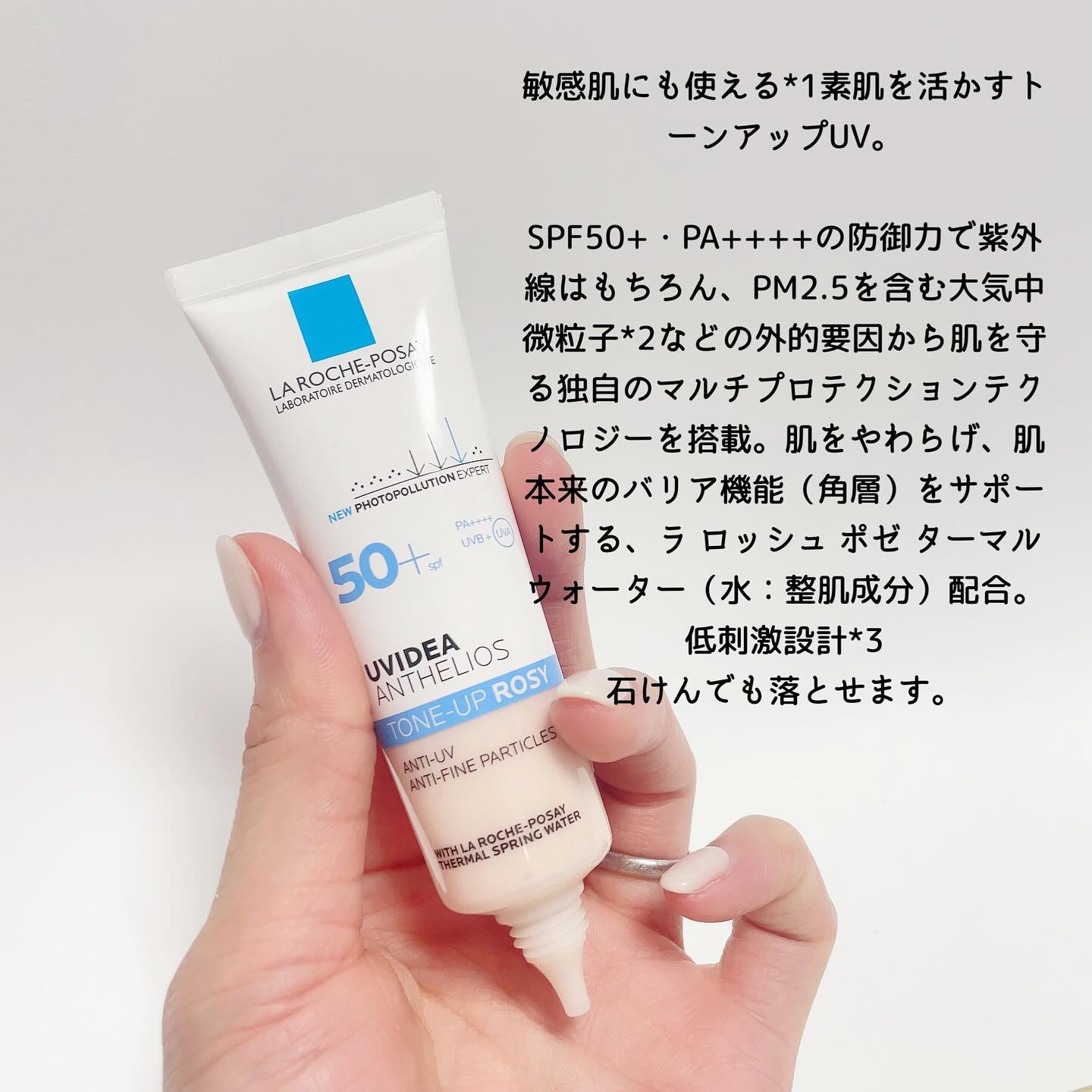 - 素肌のような透明感を演出するピンクのトーンアップUV*1。 光を乱反射し肌を綺麗に魅せるトーンアップテクノロジーを採用したトーンアップUVに、新色ローズが誕生。 肌なじみのよいピンクの色味で、澄んだ血色と上質なツヤのある素肌のような透明感肌*1を演出します。 SPF50+・PA++++の防御力で紫外線はもちろん、PM2.5を含む大気中微粒子*2などの外的要因から肌を守る独自のマルチプロテクションテクノロジーを搭載。 さらにエイジングケア*3を考えたスキンケア成分や、肌をやわらげ、肌本来のバリア機能(角層)をサポートする、ラ ロッシュ ポゼ ターマルウォーター(水:整肌成分)配合。 低刺激設計*4 石鹸で落とせます。 *1 メイクアップ効果による *2 物理的な肌の付着からの防御。すべての大気中物質をさすわけではありません *3 年齢に応じたうるおいを与えるケア *4 すべての人に皮膚刺激がおきないわけではありません。