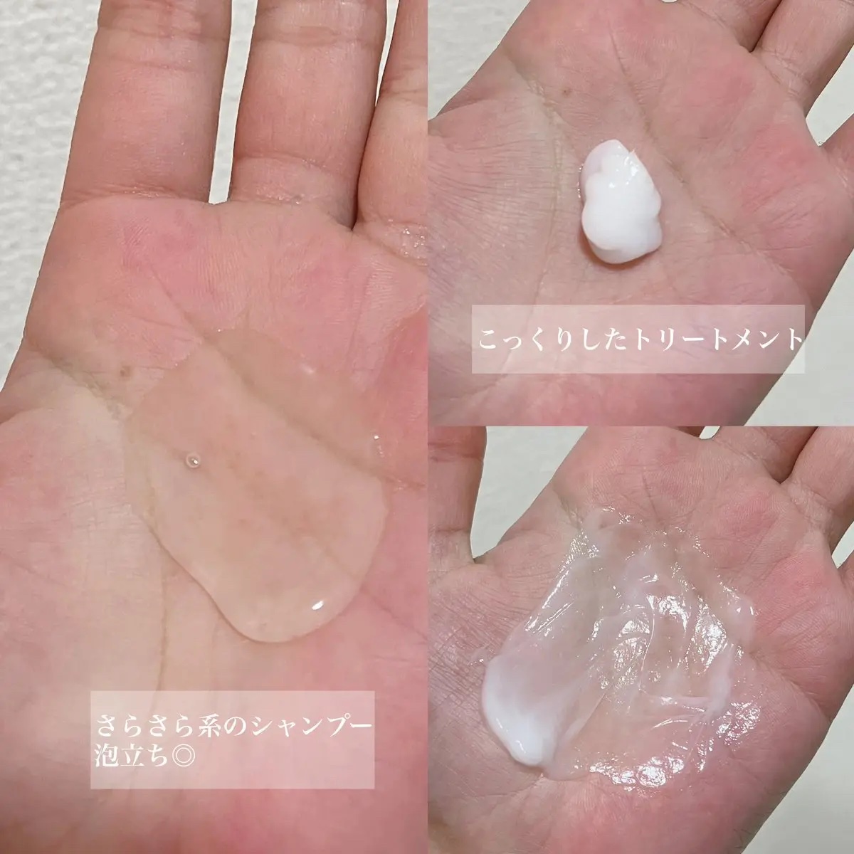 甘いお花の香りで、洗っている間ケアしてる〜って 気分になれます💐 とろふわスフレ泡のキャッチコピーの通り 泡立ちが良くてきめ細かい、柔らかい泡でした トリートメントは少しワセリンぽいというか? こちらも柔らかさを感じました