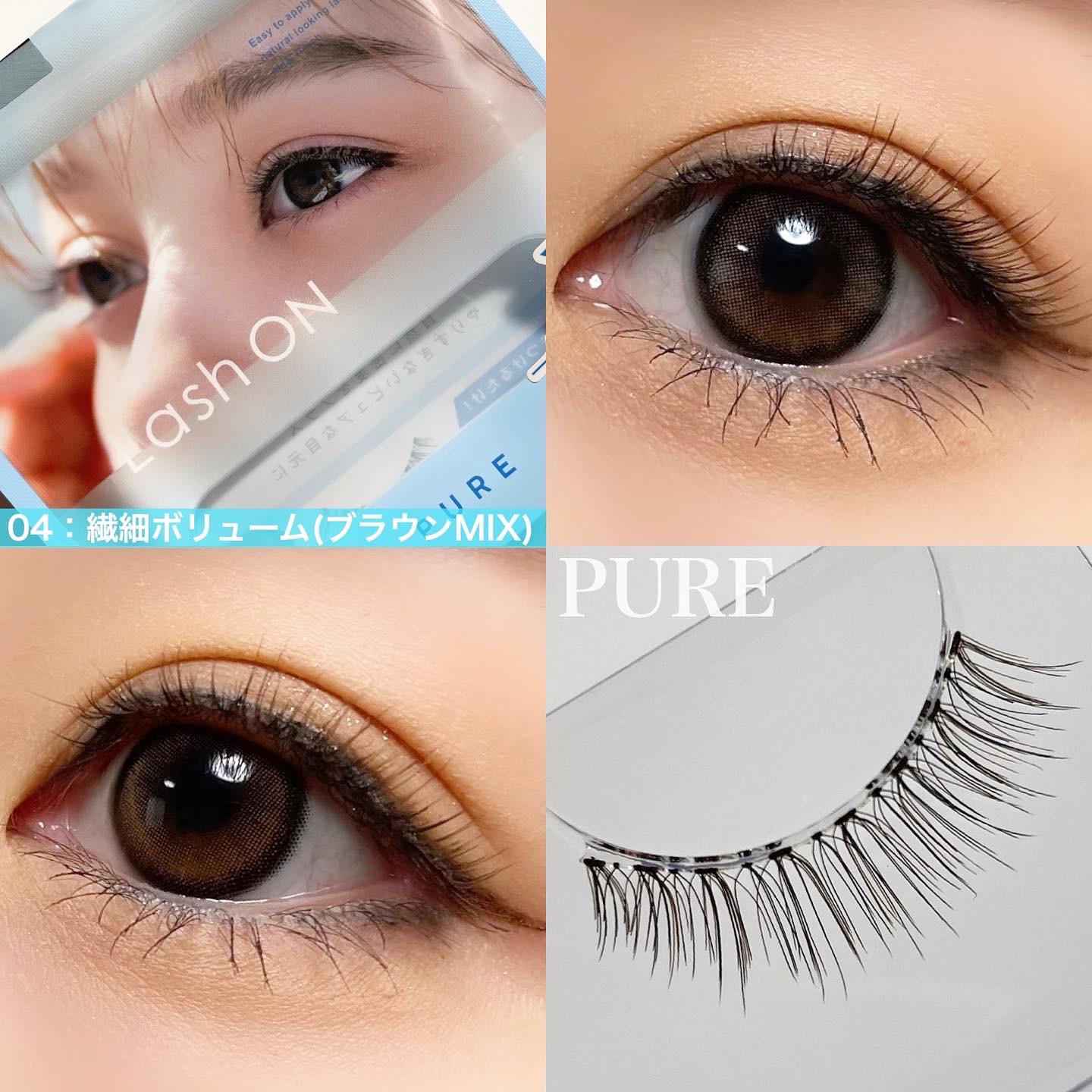 - “ワンタッチ”で理想のまつげが叶うつけまつげです。 最初から束になっているからそのままつけるだけで簡単に”束感まつげ”が完成する01・02、抜け感のあるデザインでサロンで施術した”まつげエクステ”のような仕上がりになる03~06の全6種。 自まつげが少なくても、短くても、生えグセがあっても、誰でもキレイなまつげに。ナチュラルな繊細毛で、自然かつ華やかな目元を演出します。