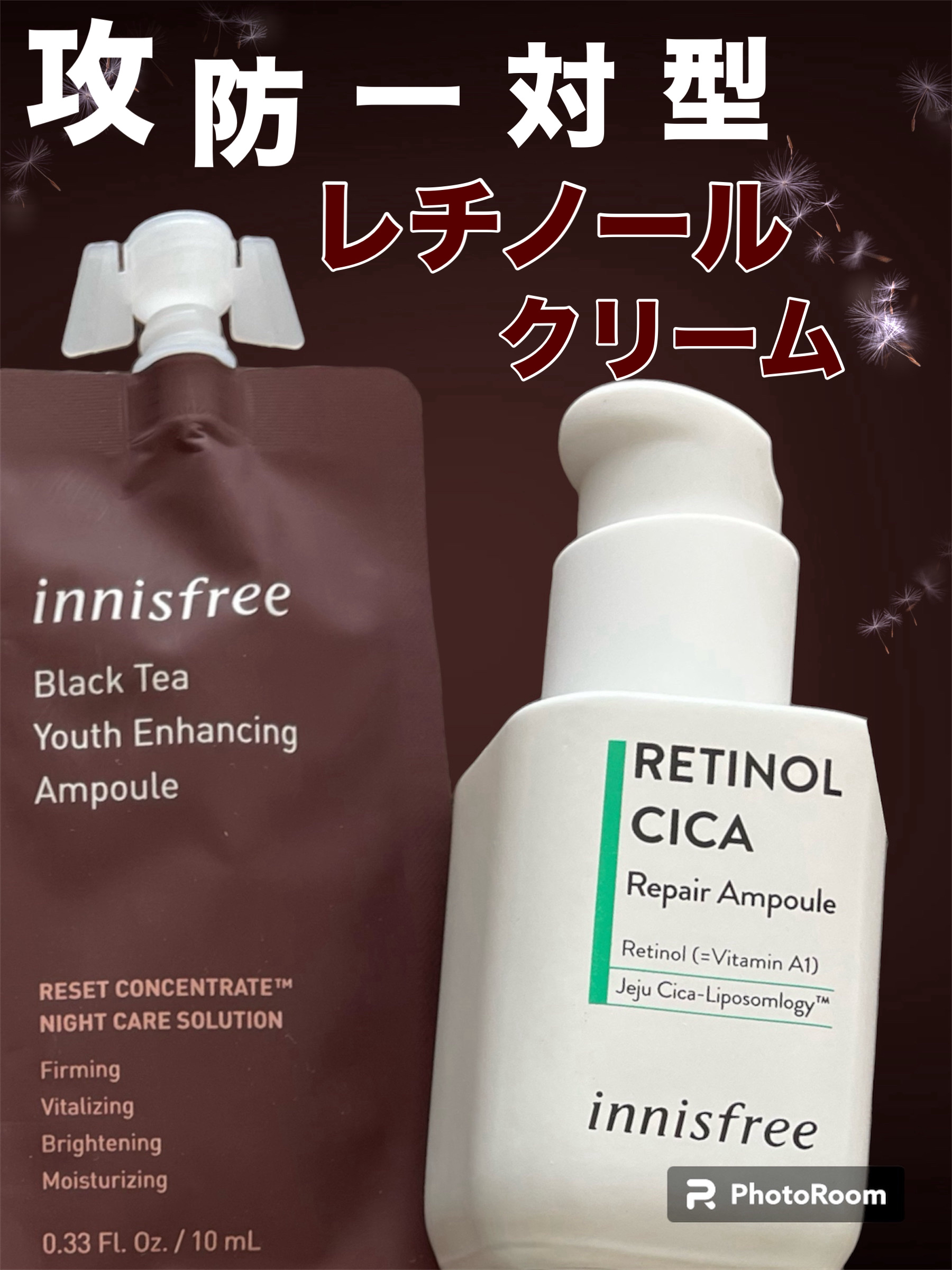 innisfree レチノール シカ リペア セラムずーっと気になってたinnisfreeのレチノール!!テクスチャーは乳液〜美容液の中間ぐらいでベタつかない感じがいいかな。A反応も私は起きなかったし使いやすいなぁという印象。ただし、一番気に...