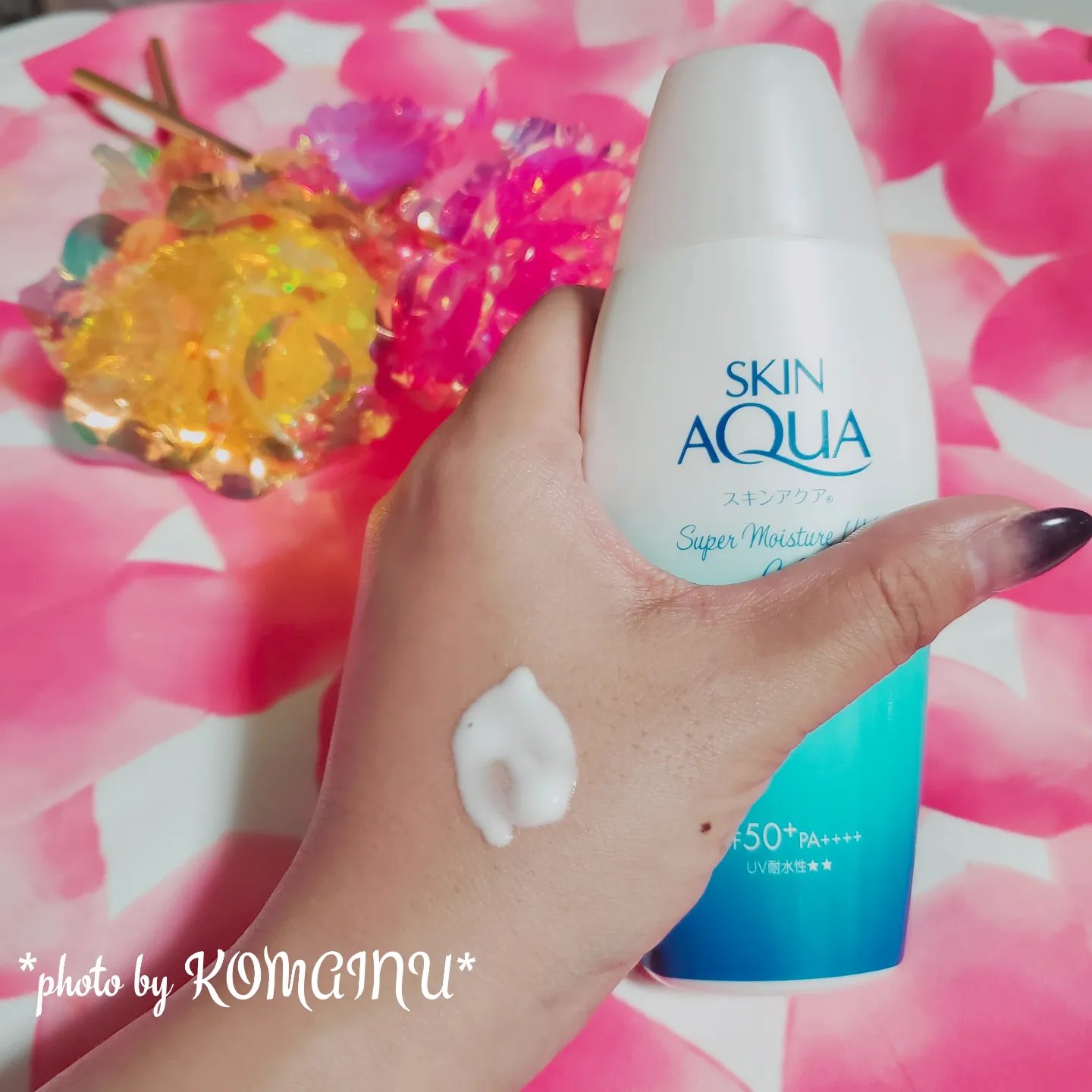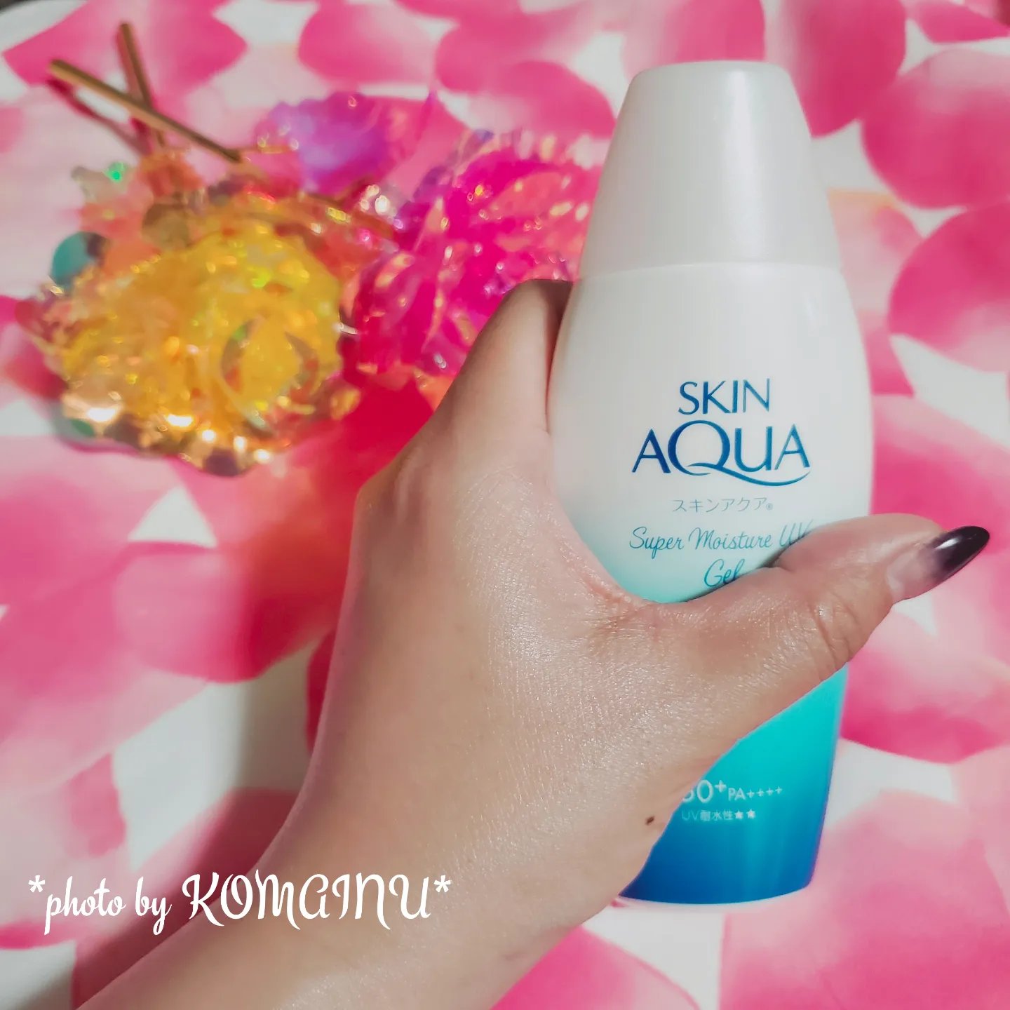 【スキンアクア】スーパーモイスチャージェルポンプタイプ購入しました。UV耐水性が書いてるので新しいバージョンかな?と思います。水のような軽いつけ心地で、ジェルタイプならではのうるおい感。顔にも身体にも使える万能UVで、SPF50+/PA+++...