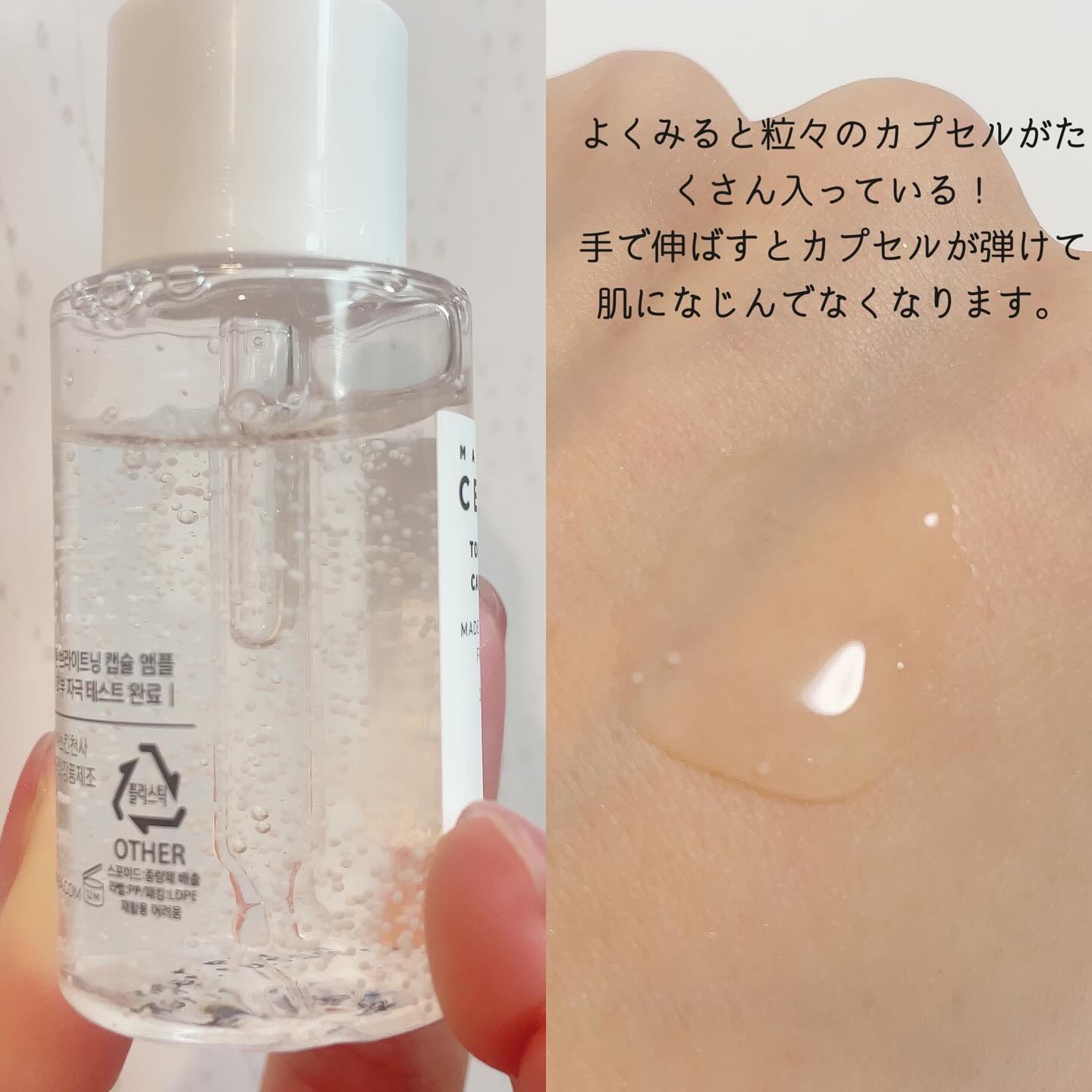 マダガスカル産CICA成分をふんだんに配合 外部環境により刺激を受けた肌を素早く鎮静させ肌本来の美しさを育んでくれる この小さくて白いカプセルが残るかな?って思ったけど馴染ませると無くなっていって浸透してる〜って感じがありました🧡 Qoo10メガ割で買うなら トーンブライトニングカプセルアンプルに決まりですね👌🤍