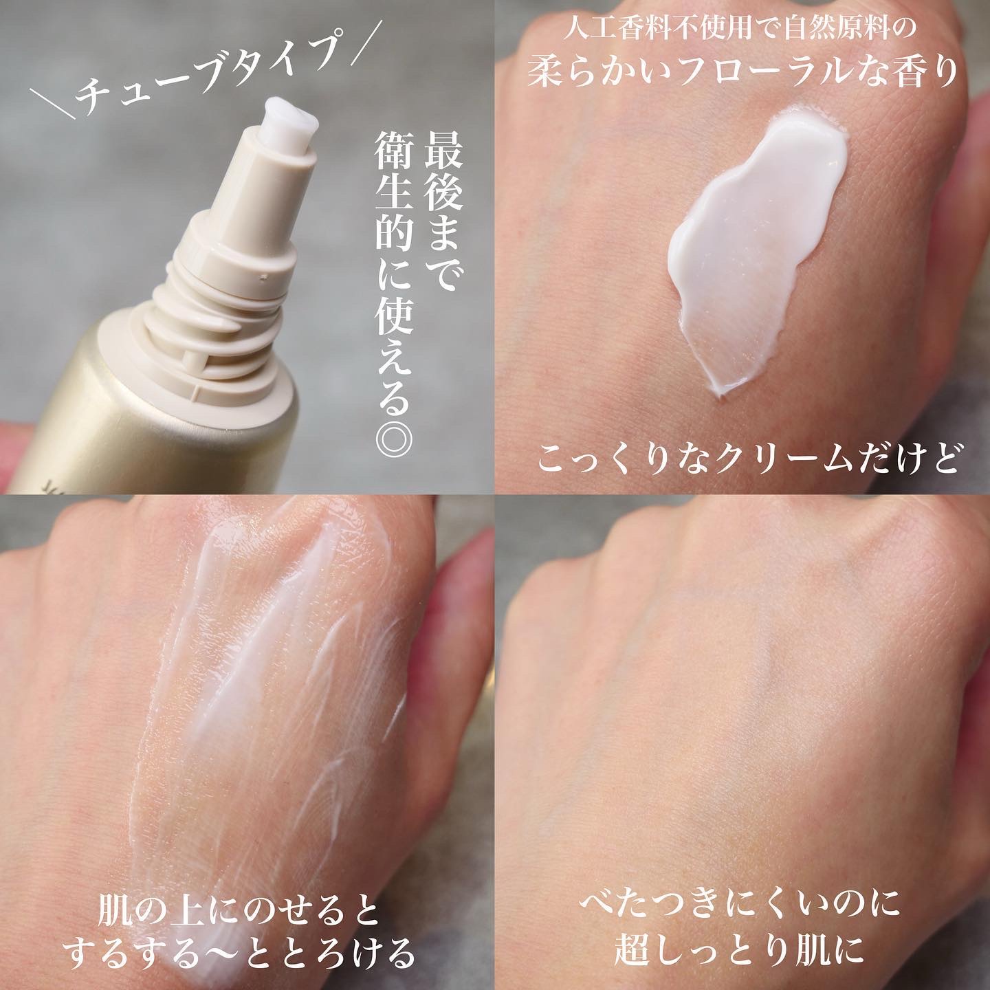 | テクスチャーは軽くのびの良いクリーム みずみずしくすっと肌になじみます | 詳細を見る | |